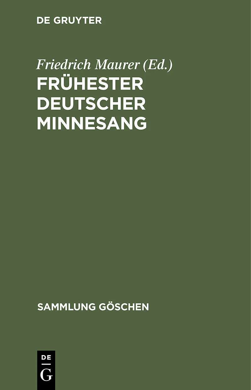 Keine ausführliche Beschreibung für "Frühester deutscher Minnesang" verfügbar. Klappentext Frontmatter -- Inhalt -- Einführung -- A. Der Donauländische Minnesang -- B. Der frühe westliche (rheinische) Minnesang -- C. Vereinigung heimischer Tradition ...