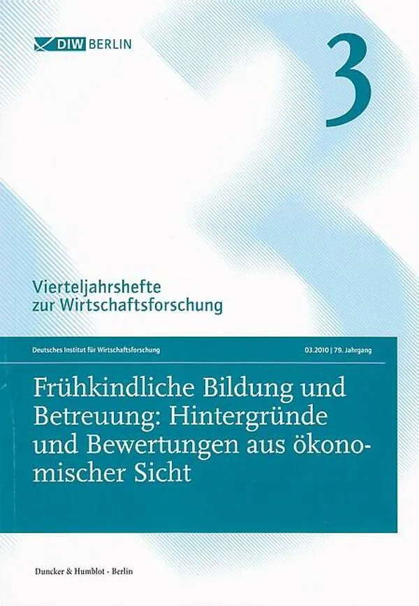 Das Vierteljahrsheft 03.2010 widmet sich der Ökonomie frühkindlicher Bildung und Betreuung. Nachdem dieses Thema viele Jahre vorrangig im angloamerikanischen Forschungsraum bearbeitet wurde, finden sich in jüngster Vergangenheit auch im deutschsprachigen Forsc...