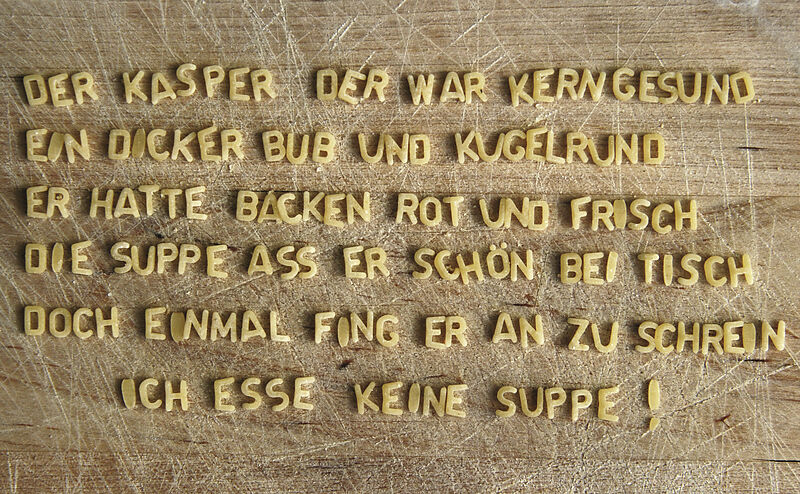 Der Kasper der war kerngesund ein dicker Bub und kugelrund. Er hatte Backen rot und frisch. Die Suppe aß er schön bei Tisch. Doch einmal fing er an zu schrein. Ich ess keine Suppe! Text: Der Kasper der war kerngesund. Ein dicker Bub und kugelrund. Er hatte Bac...