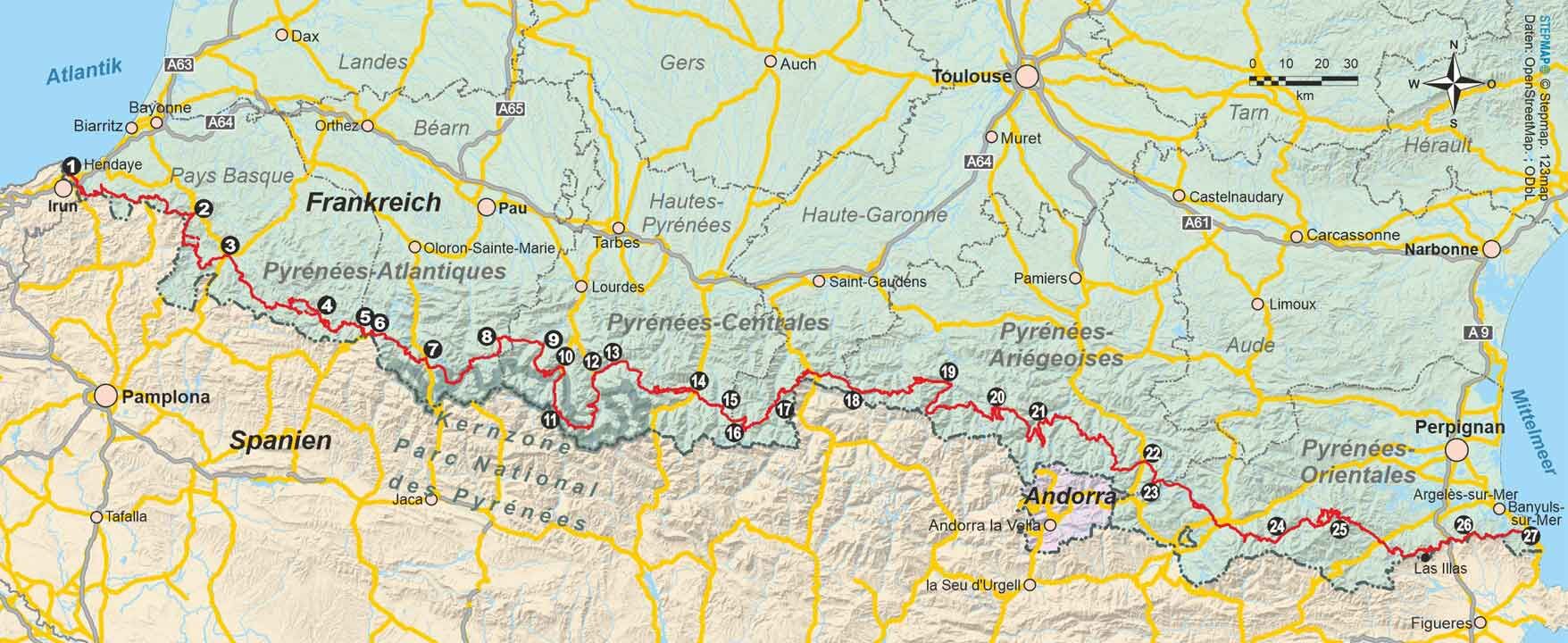 Der GR 10 ist einer der bekanntesten Fernwanderwege Frankreichs. Von Hendaye an der französischen Atlantikküste wandern Sie über 934 km und ca. 56.000 Höhenmeter entlang der französisch-spanischen Grenze bis nach Banyuls-sur-Mer am Mittelmeer. Unterwegs erlebe...