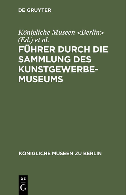 Keine ausführliche Beschreibung für "Führer durch die Sammlung des Kunstgewerbe-Museums" verfügbar. Inhalt Frontmatter -- Erdgeschofs. Plan des oberen Stockwerkes auf des dritten Seite des Umschlages -- ALLGEMEINE BESTIMMUNGEN -- DIE SAMMLUNG -- VORB...