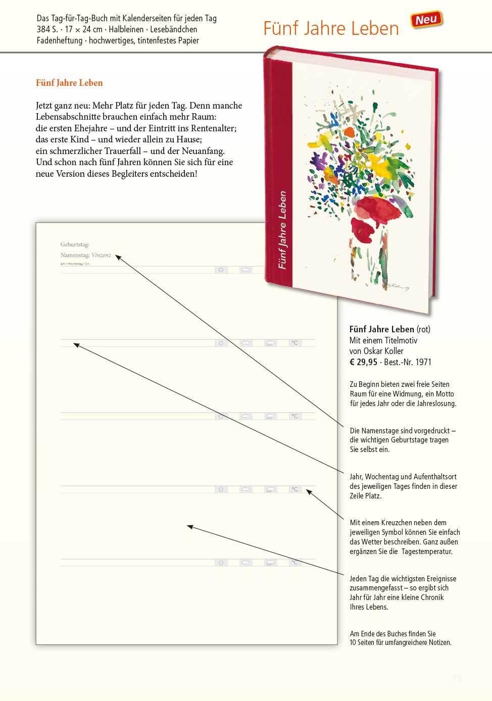 Das Tag-für-Tag-Buch mit Kalenderseiten für jeden Tag 384 Seiten mit jeweils fünf Feldern für fünf Jahre laden ein, die bedeutsamen Ereignisse des Lebens, das Alltägliche und das Besondere festzuhalten. Tag für Tag entsteht so ein farbiges Erlebnisbuch, ein kl...