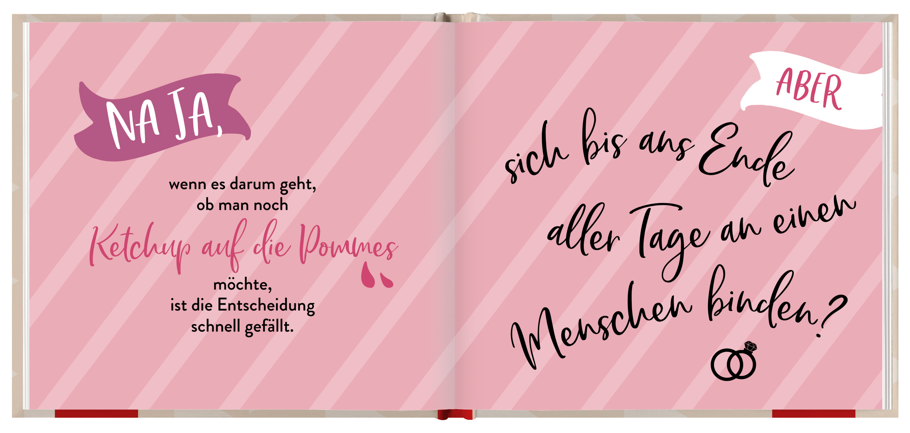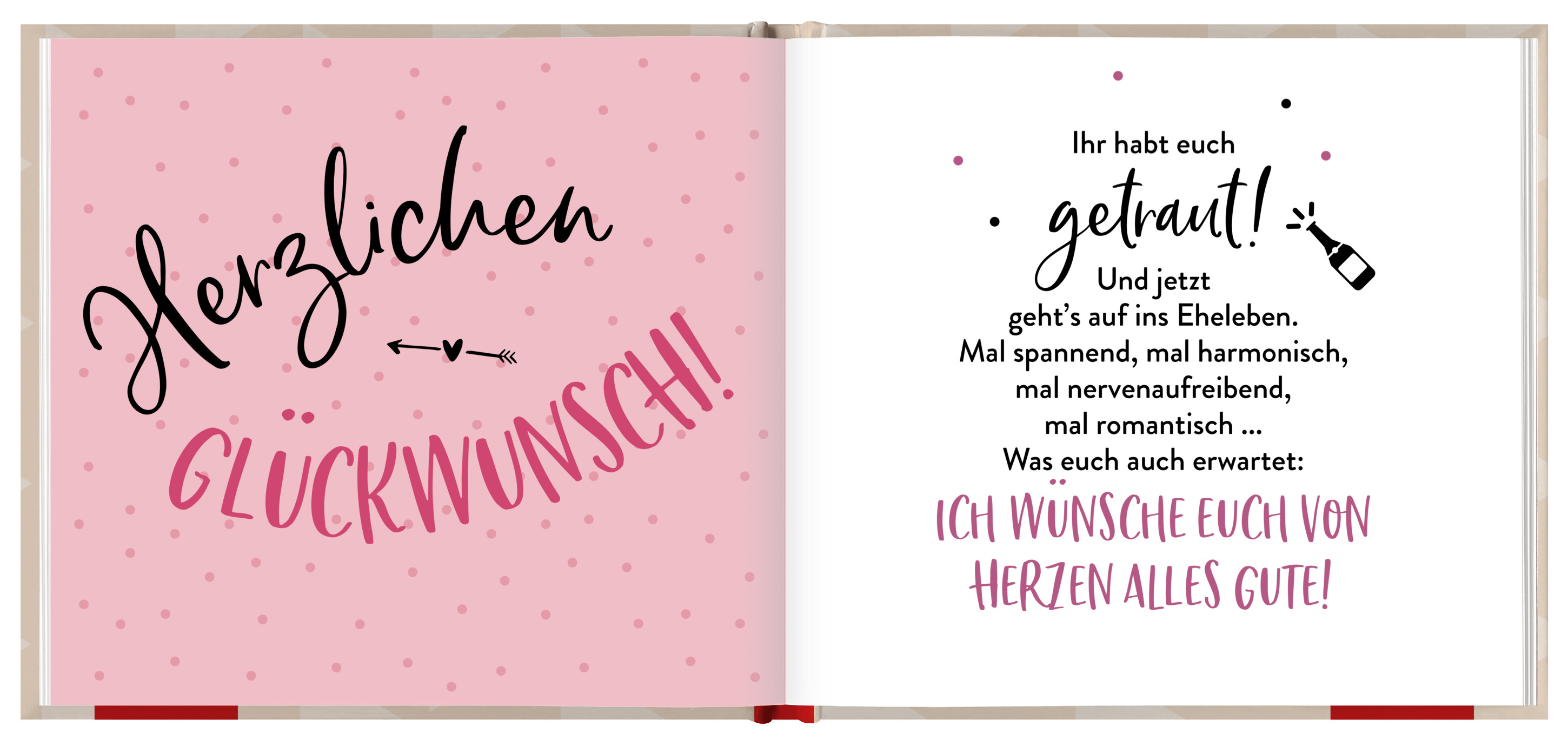 Kleines Hochzeitsgeschenk für das Brautpaar Kleines Hochzeitsgeschenk für das Brautpaar Dieses kleine Büchlein ist das perfekte Geschenk für humorvolle Brautpaare! Auf unterhaltsame Weise vermittelt es Glückwünsche zur Hochzeit und macht den Eheleuten deutlich...