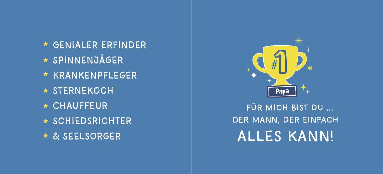 Mini-Geschenkbuch mit Komplimenten für heldenhafte Papas Papa ist der Beste! Er ist für jeden Spaß zu haben und steht uns selbst in den kniffligsten Situationen mit Rat und Tat zur Seite. Wir wissen: Unser Papa ist immer für uns da. Dieses Mini-Geschenkbuch i...