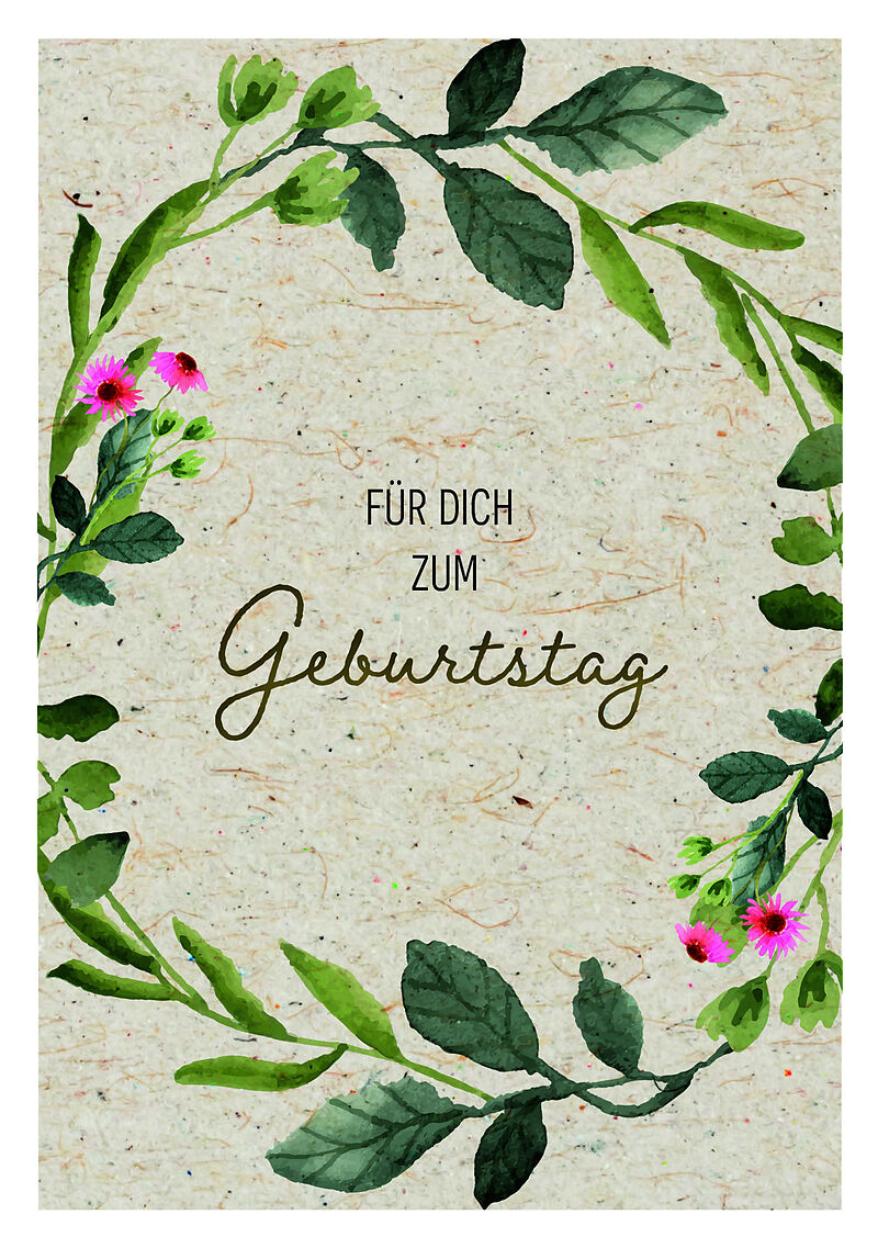 Faltkarte mit Umschlag, jeweils 16,2 x 11,4 cm, VE für den Handel: 6 Stück je Motiv. Die Karten sind auf Naturpapier gedruckt und mit Goldfolie veredelt.