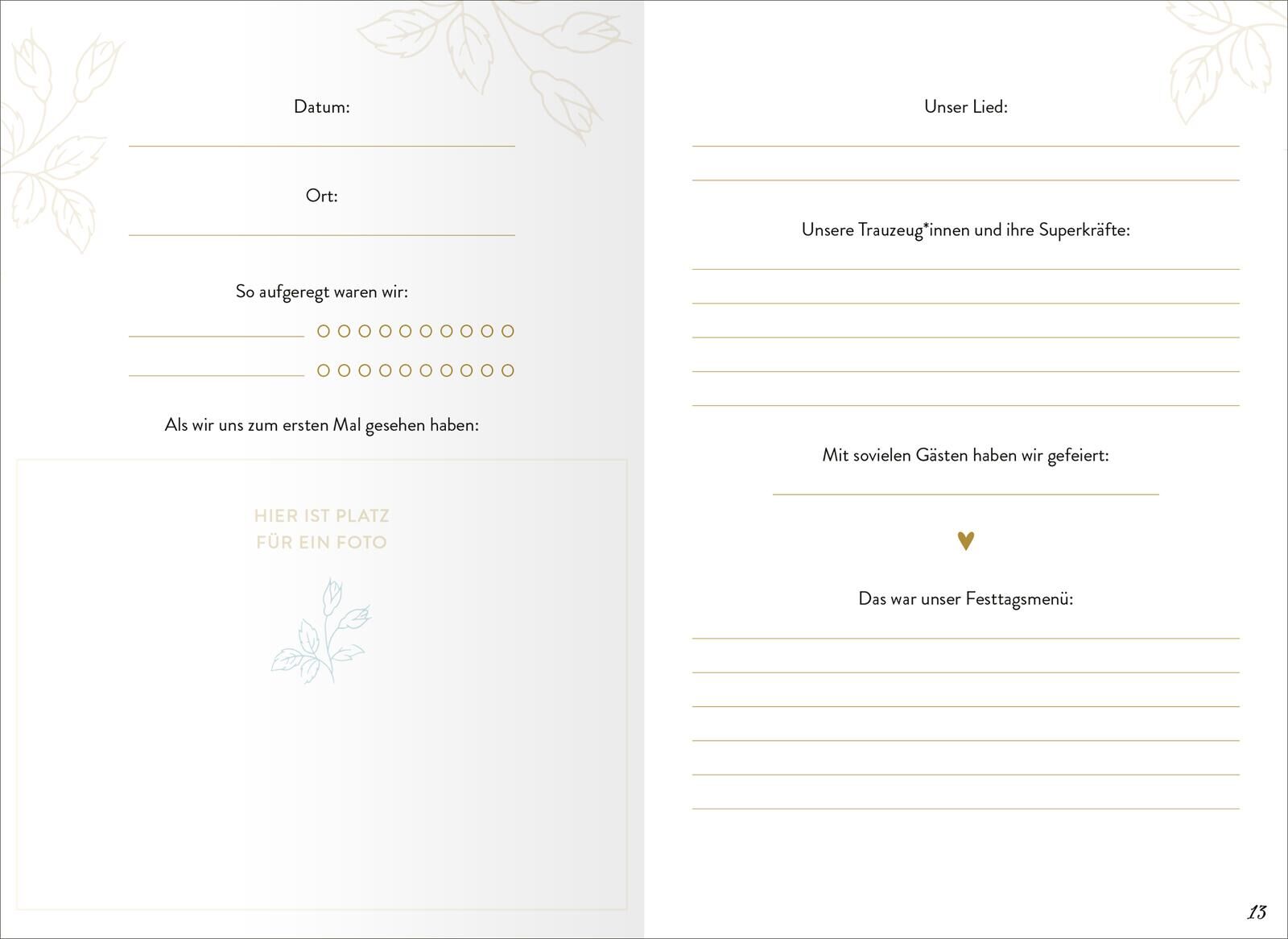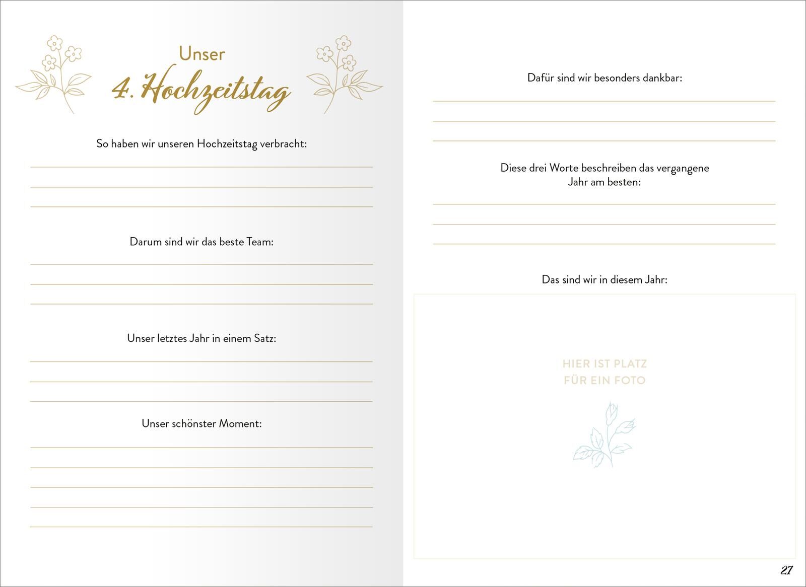 Unsere Liebesgeschichte: Erinnerungen an alle unsere Hochzeitstage Dieses Erinnerungsbuch für alle Hochzeitstage feiert die Liebe und die gemeinsamen Jahre auf eine ganz besondere Weise. Vom ersten Kennenlernen über die Trauung bis hin zu jedem einzelnen Hoch...