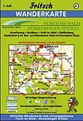 Die Kartenrückseite enthält farbige Abbildungen und touristische Hinweise wie z.B. Beschreibungen von Wanderwegen. Der Kartenausschnitt umfasst das Gebiet von Waldmünchen/Furth im Norden bis Grafenwiesen im Süden. Enthält grenzüberschreitend das Gebiet Domazli...