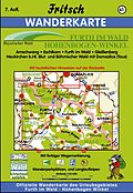Die Kartenrückseite enthält farbige Abbildungen und touristische Hinweise wie z.B. Beschreibungen von Wanderwegen. Der Kartenausschnitt umfasst das Gebiet von Waldmünchen/Furth im Norden bis Grafenwiesen im Süden. Enthält grenzüberschreitend das Gebiet Domazli...