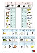 Lesen und Schreiben im Anfangsunterricht. Die Buchstabentabelle wird den Kindern von Anfang an zum selbstständigen Verschriften erster Wörter zur Verfügung gestellt. Sie ist zweigeteilt. Im oberen Teil finden sich die Vokale und diejenigen Konsonanten, die ein...