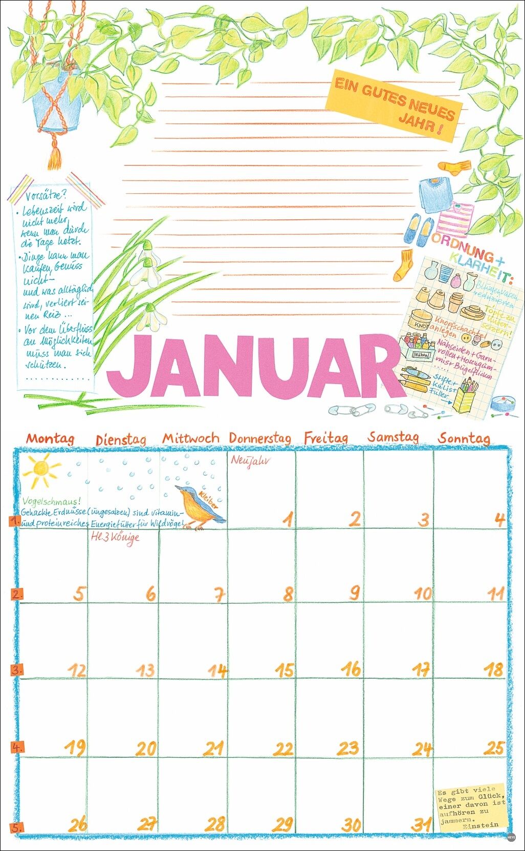 • Macht gute Laune: mit Handschrift gestalteter, fröhlich-bunter Broschurkalender - Die Organisationshilfe mit dem gewissen Extra: Jeden Monat neue, unverwechselbar schöne Illustrationen aus dem Atelier Kohwagner - Das Abenteuer namens Alltag meistern: Termin-...
