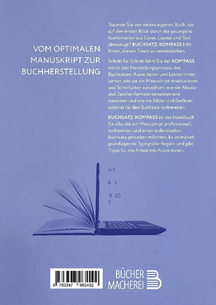 Vom optimalen Manuskript zur Buchherstellung Träumen Sie von einem eigenen Buch, das auf den ersten Blick durch die gelungene Kombination aus Cover, Layout und Text überzeugt? BUCHSATZ-KOMPASS hilft Ihnen, diesen Traum zu verwirklichen. Schritt für Schritt füh...