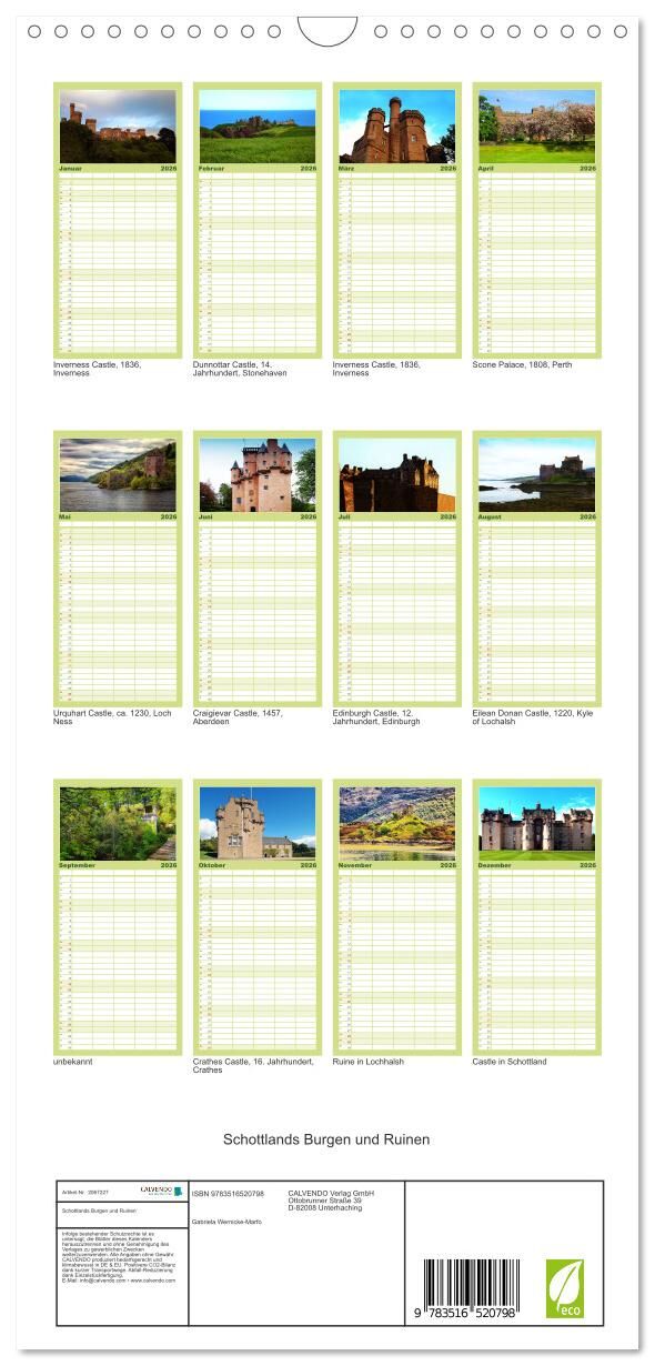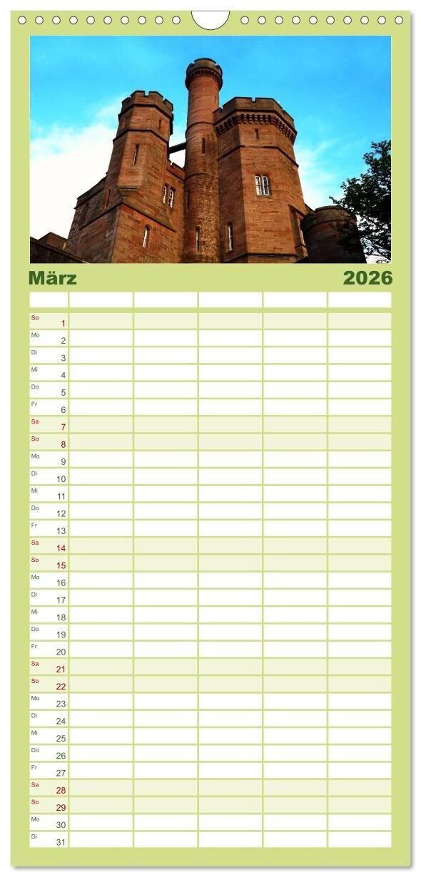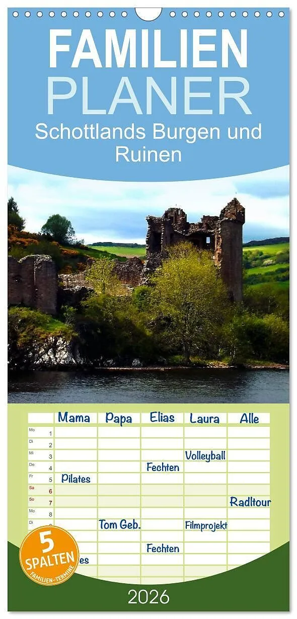 Familienplaner 2026 - Schottlands Burgen und Ruinen mit 5 Spalten (Wandkalender, 21 x 45 cm) CALVENDO