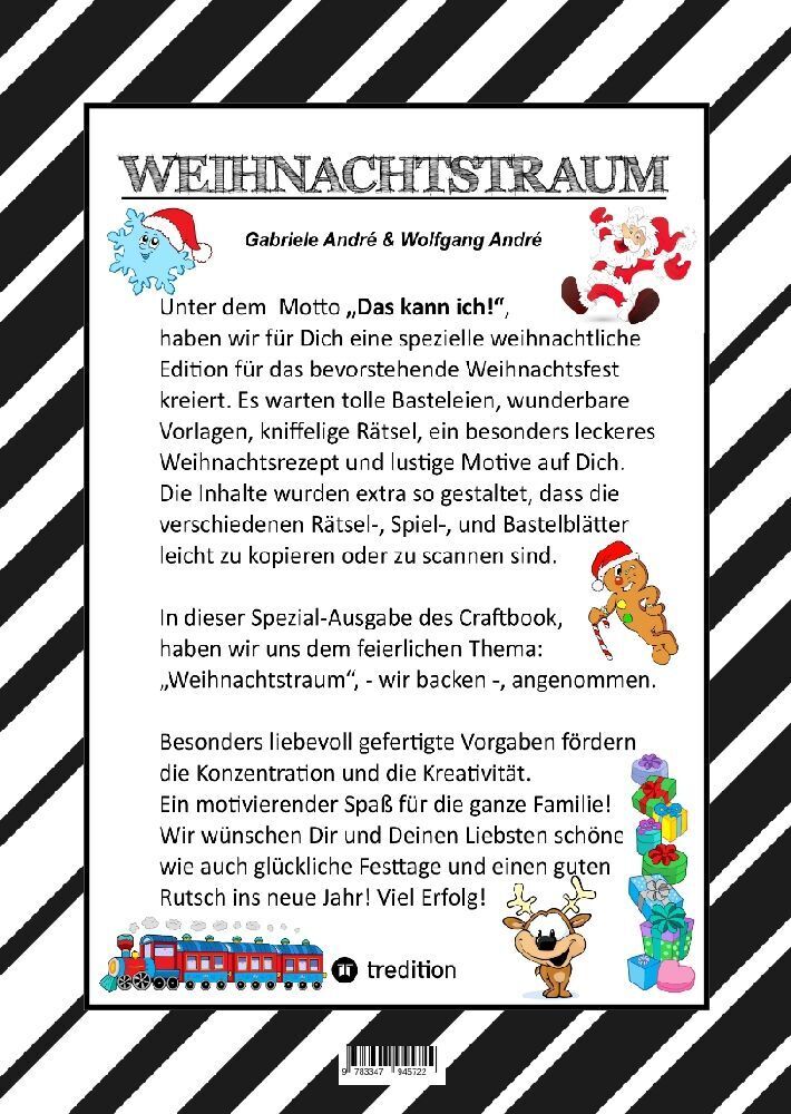 Das Craftbook Band 25, "Weihnachtstraum ist für alle Kinder ab dem Vorschulalter und Volksschülern besonders geeignet, welche Spaß daran haben, mit Eltern und Geschwistern Rätsel zu lösen, zu basteln, zu malen und Motivationsübungen gerne ausführen. Wie auch f...