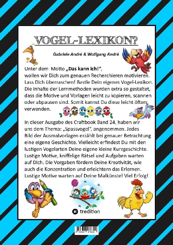 Das Craftbook Band 24 "Spassvogel, ist für alle Kinder ab dem Vorschulalter und Volksschülern besonders geeignet, welche Spass daran haben, Rätsel zu lösen, zu basteln, zu malen und Motivationsübungen gerne ausführen. Das vielfältige Angebot der Inhalte und Vo...