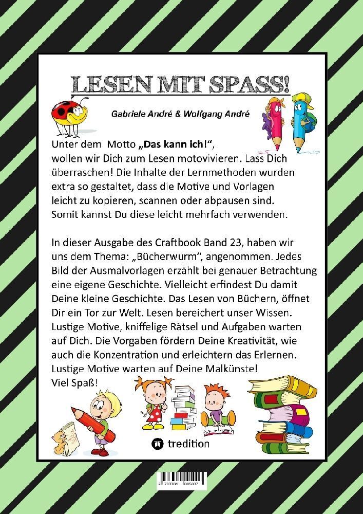 Das Craftbook Band 23 "Bücherwurm ist für alle Kinder ab dem Vorschulalter und Volksschülern besonders geeignet, um spielerisch mit Freude und Spass, das Lesen zu erlernen. Ebenso auch für all jene mit Leseschwächen. Das vielfältige Angebot der Inhalte und Vor...