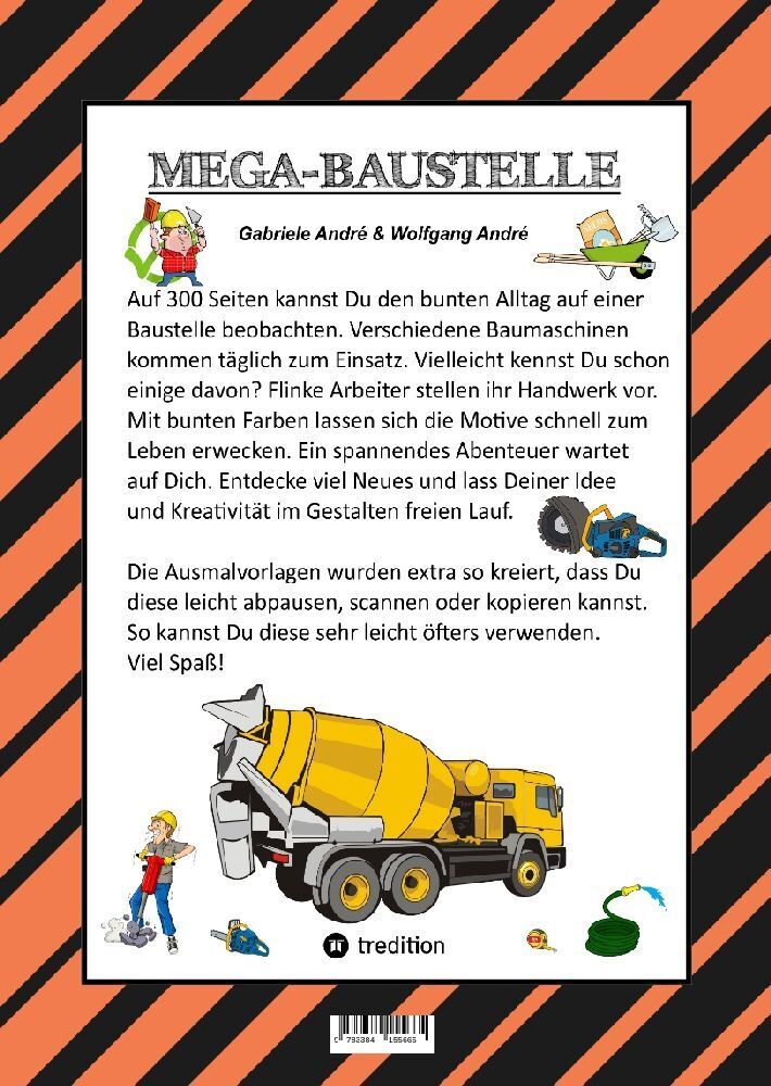 XXL - MEGA MALBUCH - 300 BLATT TOLLE MOTIVE - BAUFAHRZEUGE - WERKZEUGE - HANDWERKER - KRAN - BAGGER - GARTEN