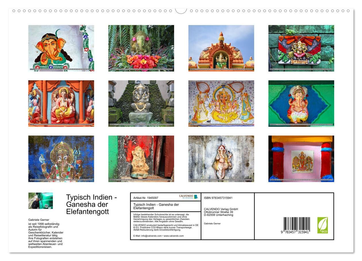Entdecken Sie die spirituelle Welt Indiens mit dem Kalender "Typisch Indien Ganesha der Elefantengott", der den beliebten Gott Ganesha in all seinen farbenprächtigen Formen und Bedeutungen zeigt. Ganesha, der Gott der Weisheit und Anfangskraft, ist in der indi...