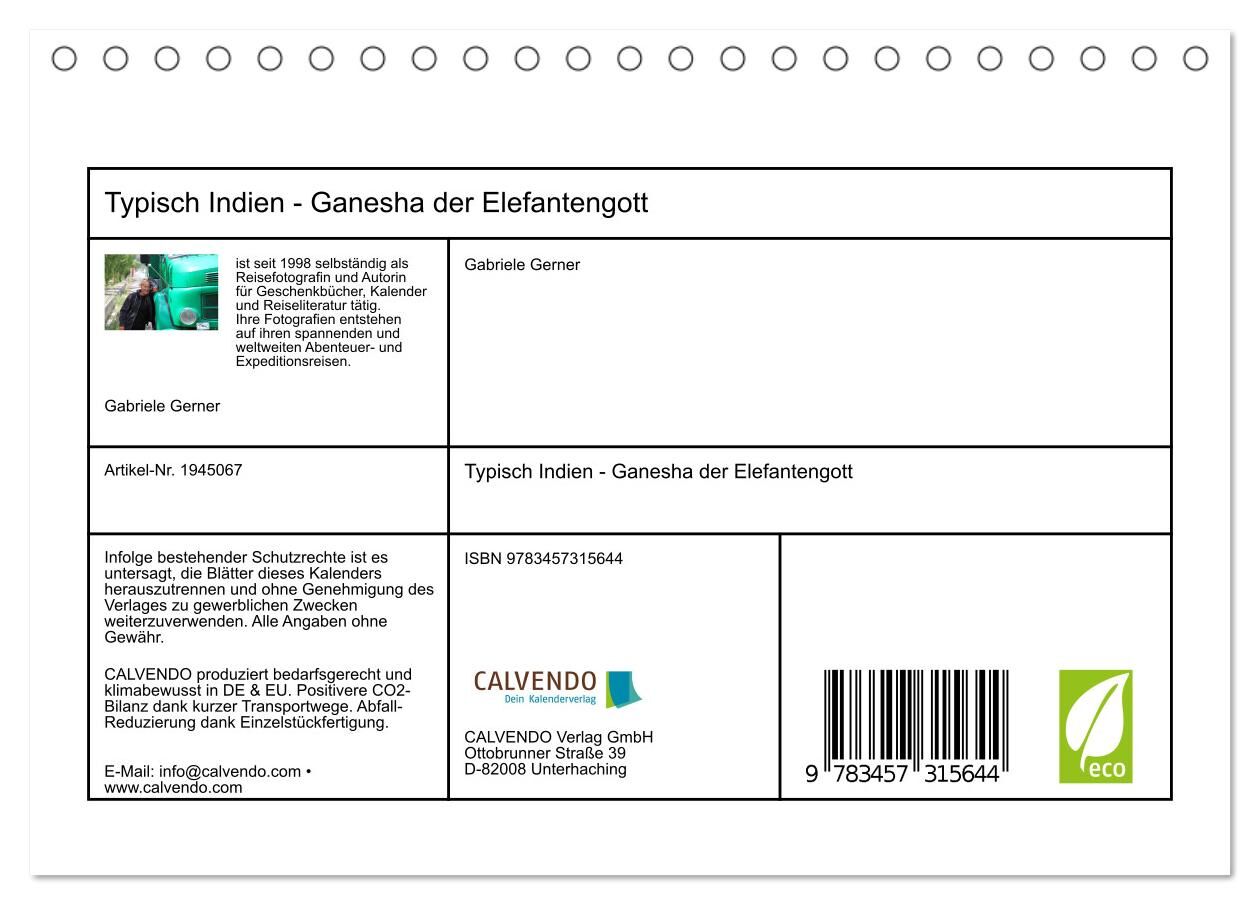 Typisch Indien - Ganesha der Elefantengott (Tischkalender 2026 DIN A5 quer), CALVENDO Monatskalender