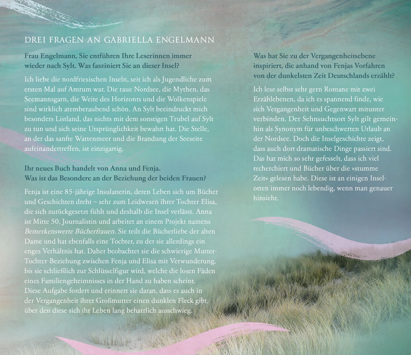 Zwei Frauen am Wendepunkt, ein tragisches Familiengeheimnis, die Liebe zu Büchern und der mystisch-raue Norden Sylts. In ihrem Wohlfühlroman »Die Bücherfrauen von Listland. Der Gesang der Seeschwalben« verbindet Bestseller-Autorin Gabriella Engelmann zauberha...