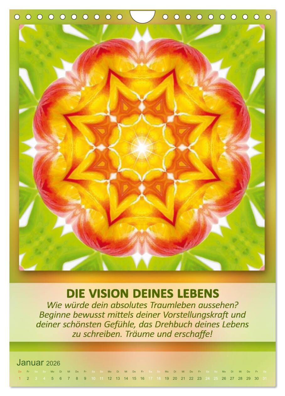 Dieser farbenfrohe und positiv ausgerichtete Mandala-Kalender inspiriert seinen Betrachter dazu, sein Leben für Liebe, Glück und Freude zu öffnen. Er erhält ein Gespür, dass er ein Teil des großen Ganzen ist, das ihn beschützt und Geborgenheit vermittelt. Unse...