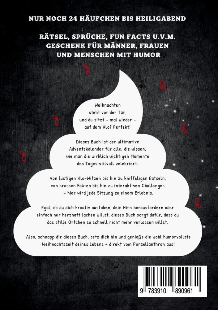 Weihnachten steht vor der Tür und du suchst noch nach einem originellen Geschenk, das garantiert für Lacher sorgt? Da kommt dieses Buch gerade recht! Mit diesem Adventskalender wird die tägliche Sitzung auf dem Porzellanthron zu einem wahren Fest der Freude.Sc...