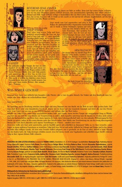 "Jesse Custer stellt sich in der Wüste Texas dem Heiligen der Killer zum großen Show-Down. Leider steht ihm dieser nämlich im Weg auf seiner Suche nach Gott. Doch damit nicht genug, muss sich der gesegnete Prediger auch noch mit Beziehungsproblemen rumschlagen...