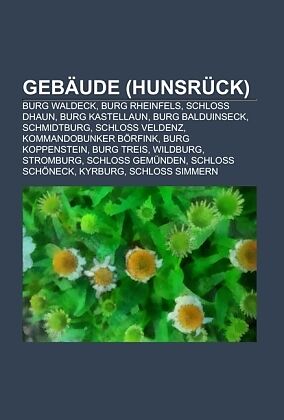 Quelle: Wikipedia. Seiten: 102. Nicht dargestellt. Kapitel: Burg Waldeck, Burg Rheinfels, Schloss Dhaun, Burg Kastellaun, Burg Balduinseck, Schmidtburg, Schloss Veldenz, Kommandobunker Börfink, Burg Koppenstein, Burg Treis, Wildburg, Stromburg, Schloss Gemünde...