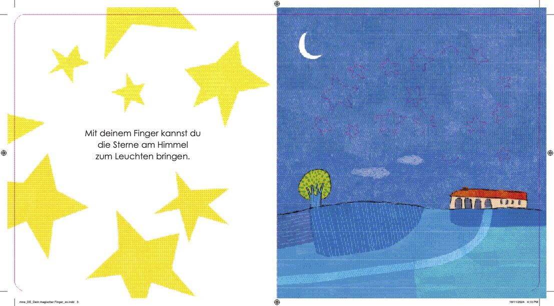 Mit dem Finger kann das Kind die Elemente auf dem Bild verschieben, und damit das Schiff über das Meer fahren lassen oder die Sterne am Himmel zum Leuchten bringen. - Spielbuch mit farbenfrohen Bildern - Fördert die Feinmotorik - Ein ideales Geschenk, das zu e...