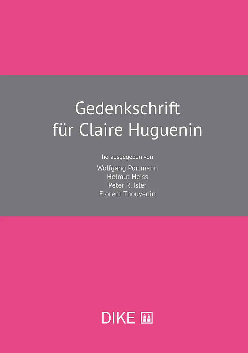 Das vorliegende Buch erscheint im Gedenken an Claire Huguenin, Prof. Dr. iur., LL.M., Rechtsanwältin, ordentliche Professorin an der Universität Zürich von 1997 bis 2018. Nebst einer von der Dekanin der Rechtswissenschaftlichen Fakultät der Universität Zürich ...