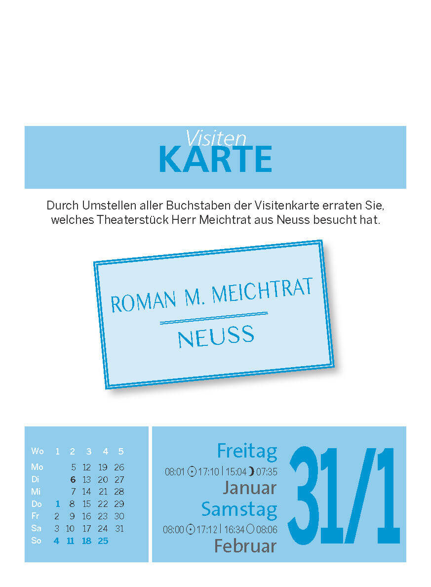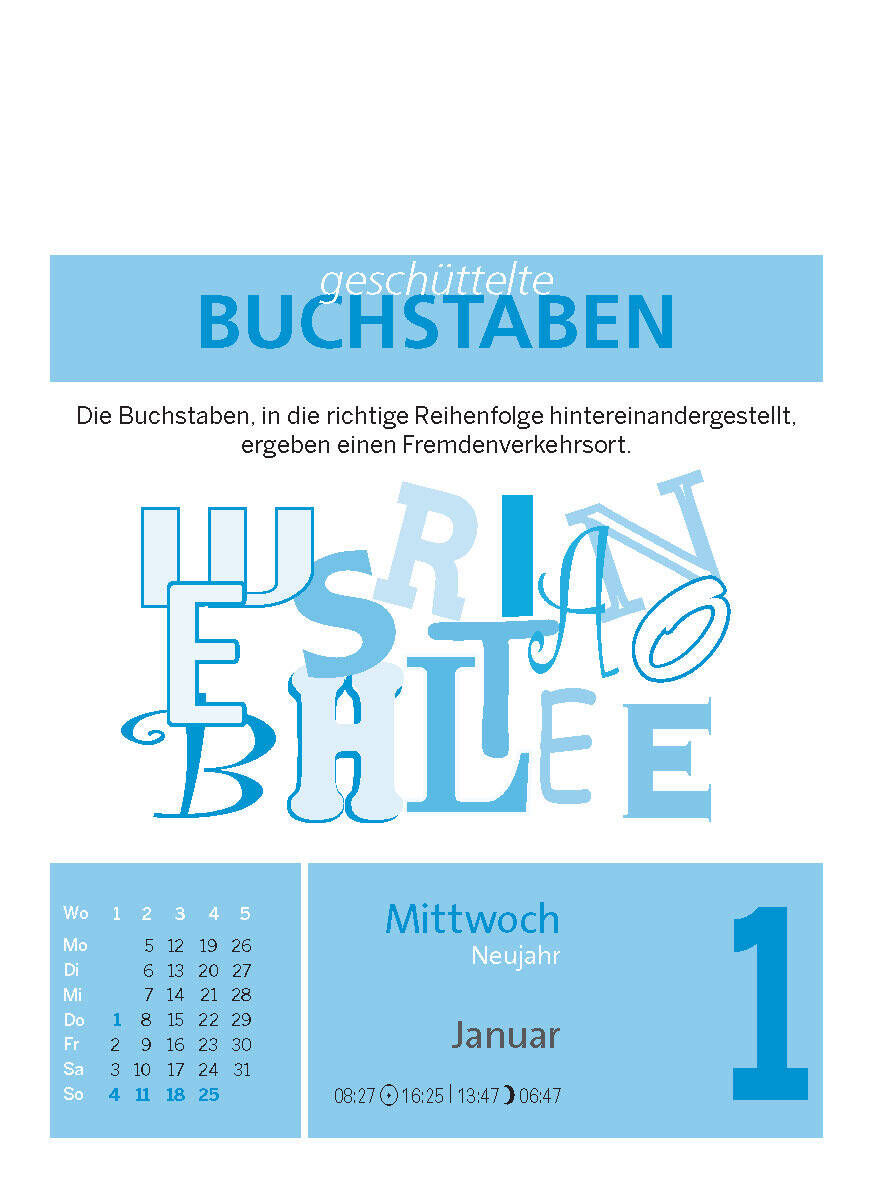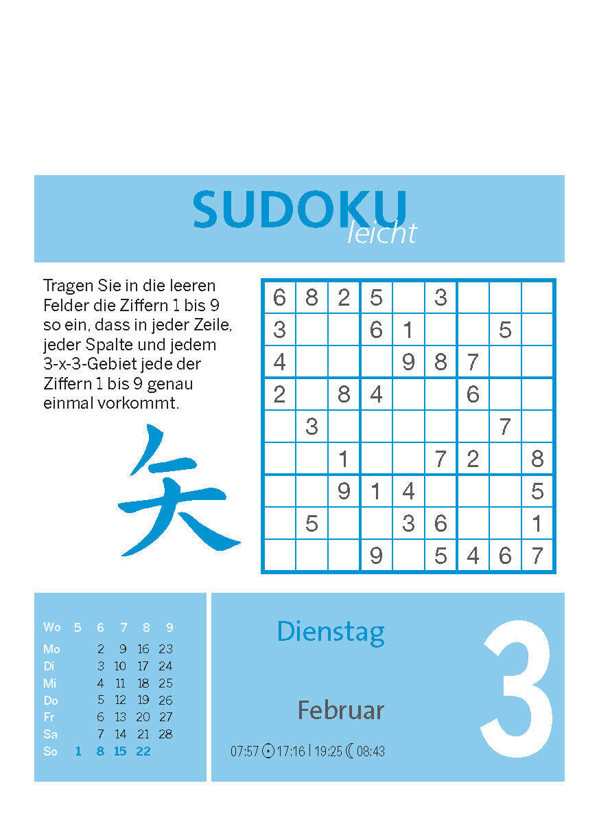 Powertraining für die grauen Zellen Sport treiben kann man auch nur mit dem Kopf. Ja, man sollte es sogar! Am besten täglich. Damit man geistig fit und leistungsfähig bleibt. Dieser Kalender bietet täglich eine neue Herausforderung aus dem Denksport. Seien es ...