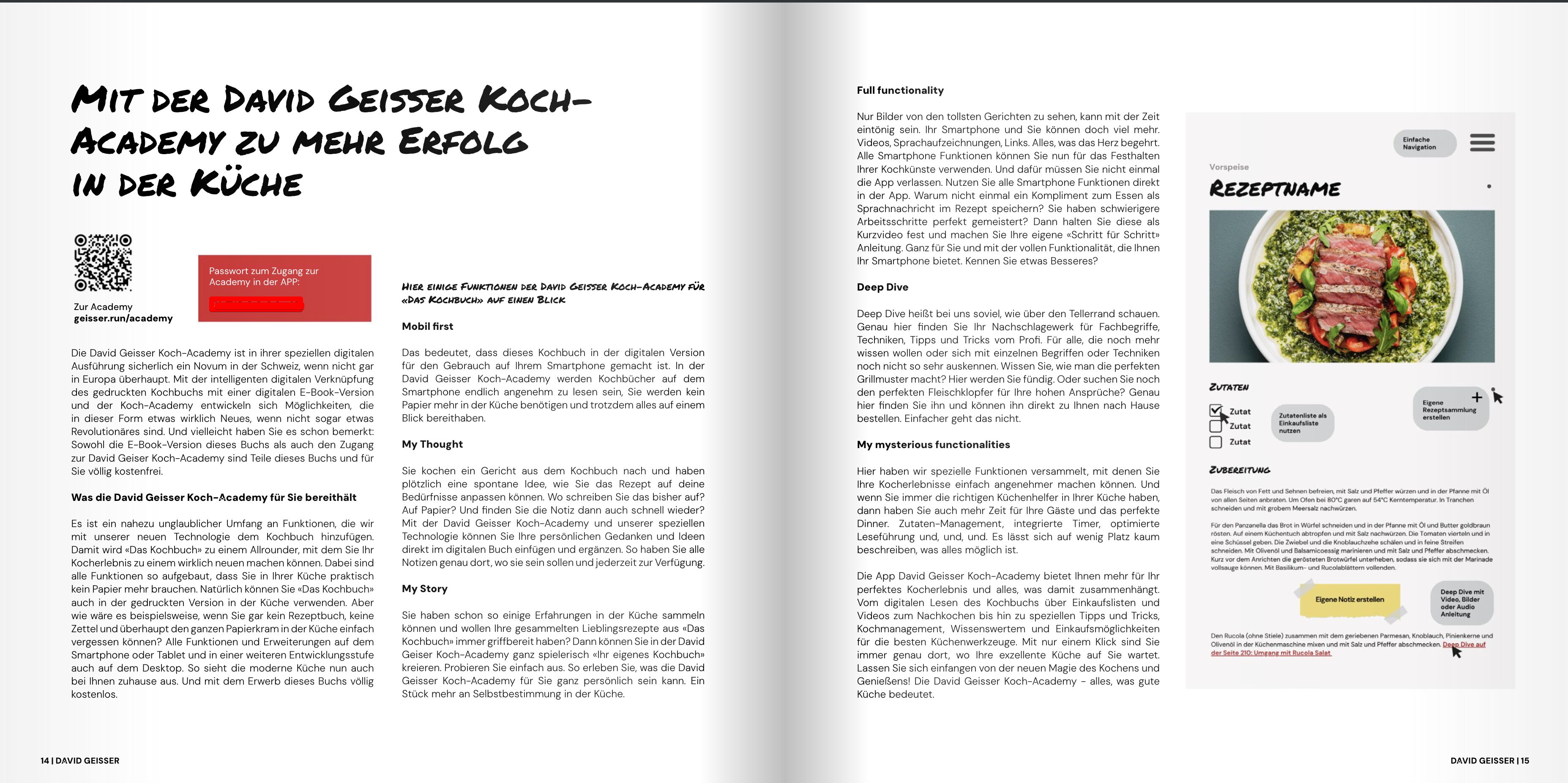 David Geisser, ein Name, der in der kulinarischen Welt ein Gewicht hat wie kaum ein anderer, präsentierte im Dezember 23 sein neuestes Werk "Rezept zum Erfolg" an einer vielbeachteten Buchvernissage. Der Schweizer Fernsehsender SRF widmete diesem Anlass einen 15-minütigen Beitrag in bester Sendezeit ein Zeugnis für die Bedeutung, die Geisser in der Gastronomieszene einnimmt. "Rezept zum Erfolg" ist weit mehr als ein Buch; es ist ein Meilenstein in Geissers Karriere. Als erster Starkoch, der seinen beruflichen Weg für den Nachwuchs in Buchform aufbereitet, setzt er neue Maßstäbe. Erhältlich als Print, Hörbuch und E-Book, spricht es angehende Köche auf allen Ebenen an und dient ihnen als Inspiration und Leitfaden. Doch Geisser ruht sich nicht auf seinen Lorbeeren aus. Zusammen mit dem jüngsten Zwei-Sterne-Koch hat er im Dezember 22 ein weiteres Meisterwerk geschaffen: "Das Kochbuch". Dieses Werk geht über die Grenzen eines herkömmlichen Kochbuchs hinaus, indem es Technologien wie GetMoreBrain nutzt, die das Buch zum Leben erwecken mit einer eigenen App, Augmented Reality, 40 interaktiven Rezepten inklusive Download und Community-Zugang. "Das Kochbuch" ist nicht einfach ein weiteres Rezeptbuch. Mit 1,5 kg ist es ein Schwergewicht, das in Sachen Beschreibungen und Bildern neue Standards setzt. Dank GetMoreBrain bietet es den Lesern nicht nur großartigen Lesespaß, sondern auch einen praktischen Nutzen, da es mit der Zeit lebt und seine Inhalte sich weiterentwickeln. Die Möglichkeit für Unternehmen, ein eigenes Designbuch zu erstellen und dieses weltweit in kürzester Zeit in Auftrag zu geben, ist eine Innovation, die den Buchmarkt revolutioniert. Geissers Erfolgsgeschichte begann früh. Mit seiner Schulabschlussarbeit "Mit 80 Tellern um die Welt" erlangte er über Nacht nationale Bekanntheit. Es folgte ein beeindruckender Werdegang: Vom Gourmet Restaurant "Motto del Gallo" über eine Lehre im Gault-Millau-Restaurant "il Casale" bis hin zur Vergleichung mit Starkoch Jamie Oliver durch den Tagesanzeiger. Seine Neugier und sein Engagement, gepaart mit seiner Ausstrahlung, öffneten ihm Tür und Tor. 2013 diente Geisser in der Schweizer Garde im Vatikan und verfasste fast nebenbei sein drittes international erfolgreiches Buch "Buon Appetito". Es folgten ein YouTube-Debüt, der Bestseller "Apero Riche", die Eröffnung seines eigenen Kochstudios und schließlich die Kochsendung "Coche und Gnüsse" bei TVO. Diese Aktivitäten führten zu einem stetigen Anstieg seiner Social-Media-Präsenz, was 2020 in der Auszeichnung mit dem German Influencer Award gipfelte. Internationale Auftritte, wie bei FOX News USA, und Auszeichnungen für seine Bücher, wie für "The Vatican Christmas Cookbook", welches als "Best Entertaining Book 2021" prämiert wurde, sind weitere Meilensteine seiner Karriere. Zuletzt gewann er den Swiss Influencer Award, was bestätigt: Alles, was David Geisser anfasst, wird zu Gold.