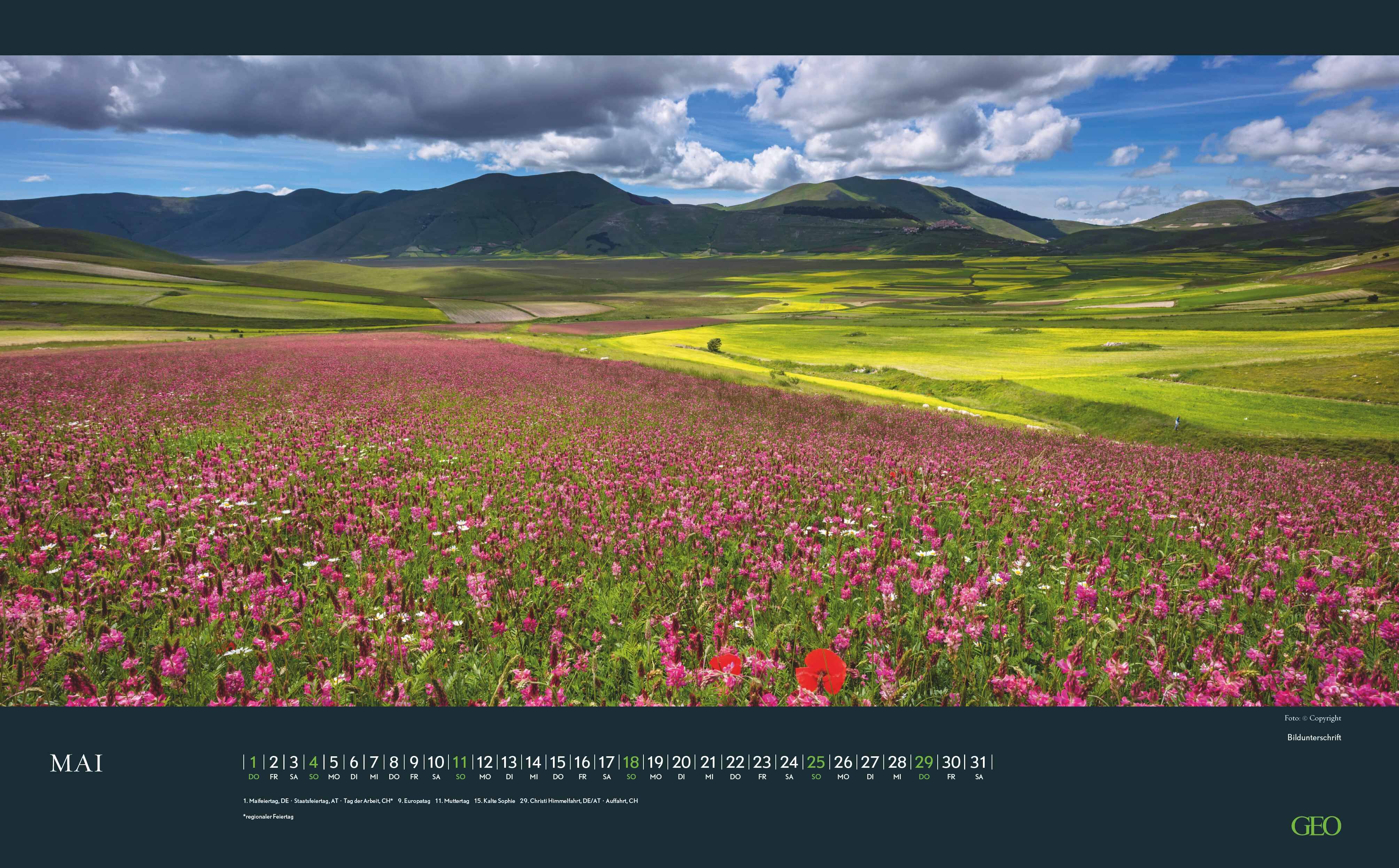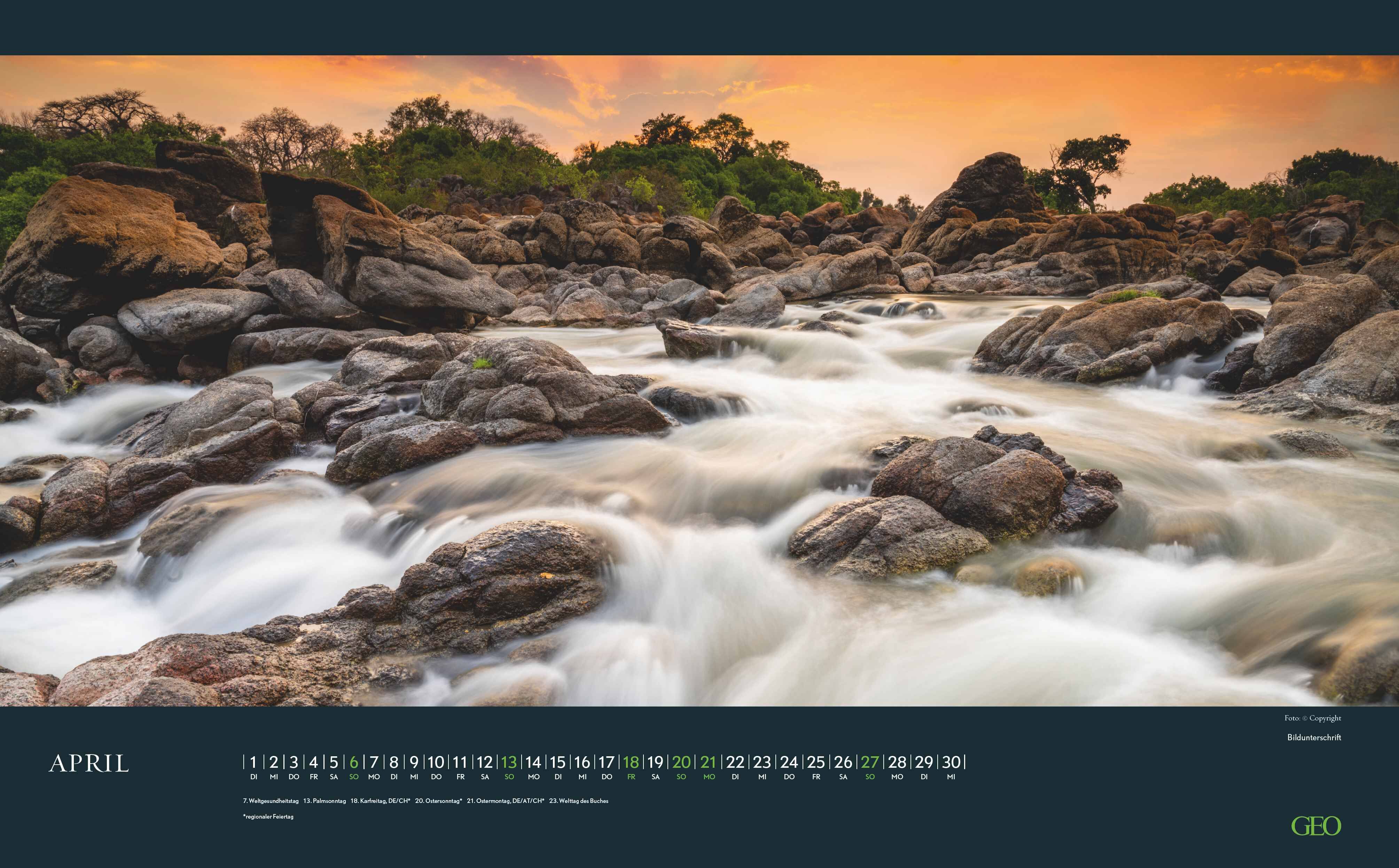 Der GEO Augenblicke in der Natur 2026 Kalender fängt die schönsten Momente der Natur in eindrucksvollen Fotografien ein von Strandspaziergängen über tosende Wasserfälle bis hin zu faszinierenden Wolkenformationen. Monat für Monat verzaubern Licht und Farben d...