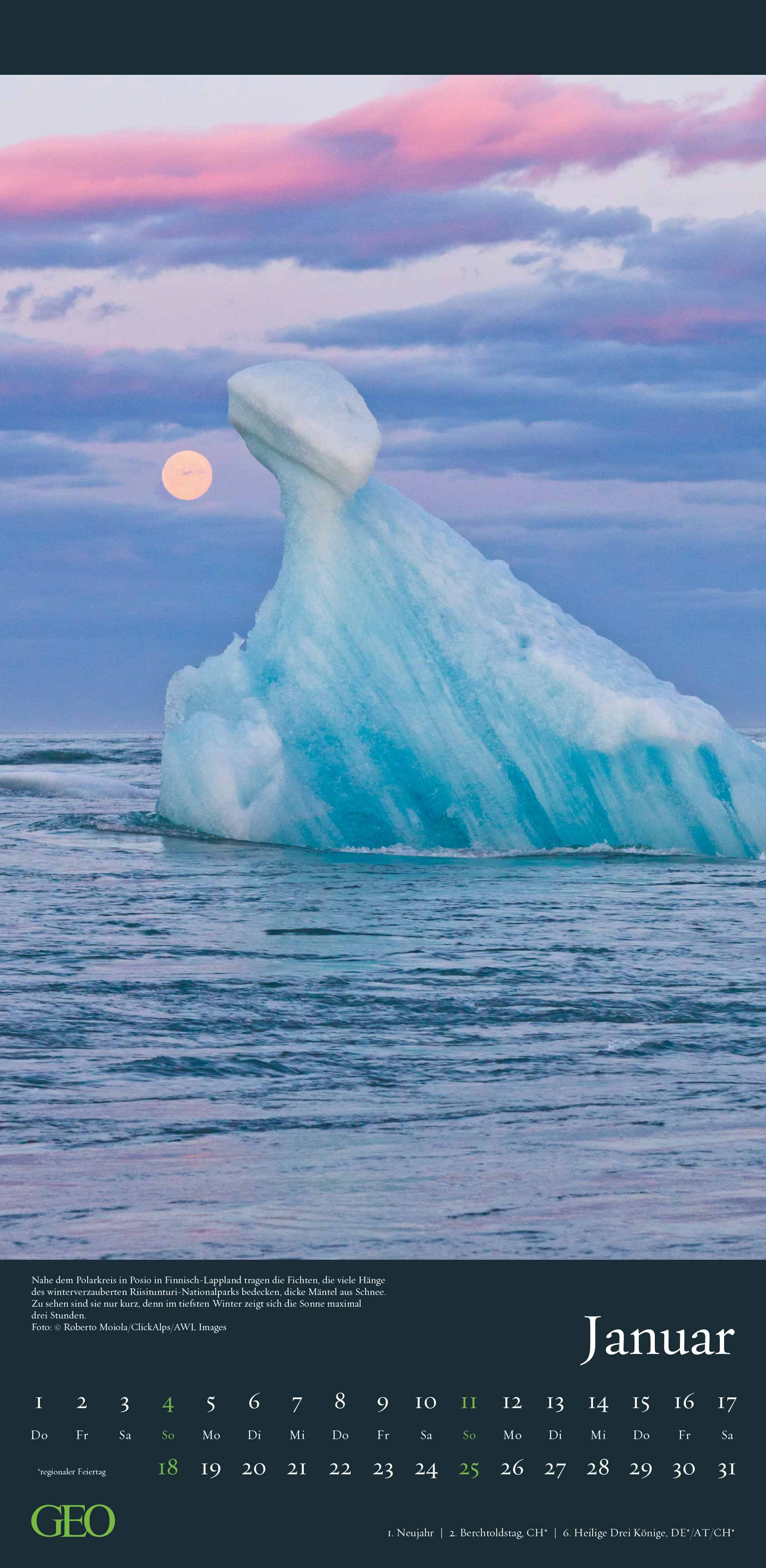 Der GEO Faszination Natur 2026 Kalender ist eine Hommage an die Schönheit unserer Erde. Monat für Monat präsentiert er eindrucksvolle Landschaften, Tieraufnahmen und Naturmotive, die den Zauber der Schöpfung in faszinierenden Fotografien einfangen. Highlights...