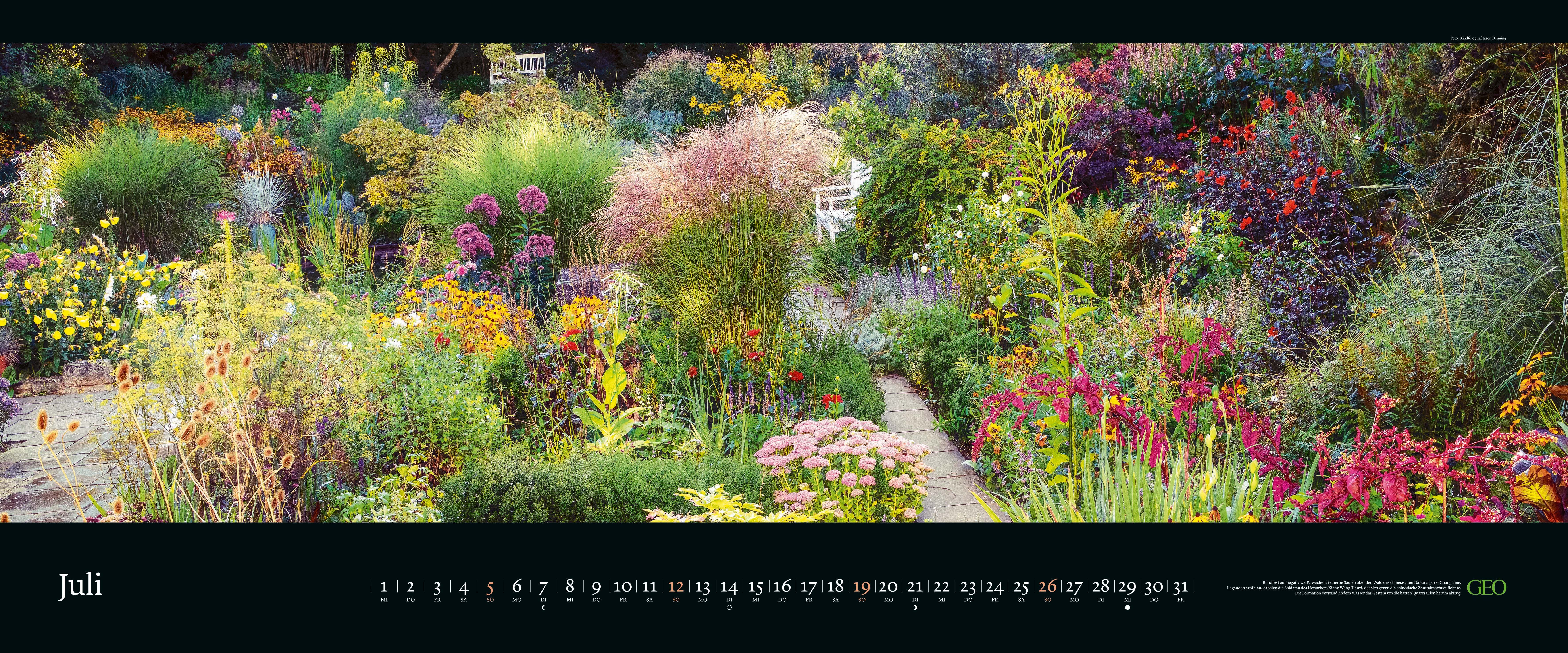 Der GEO Panorama-Kalender Die schönsten Gärten 2026 entführt Sie in zwölf außergewöhnliche Gartenwelten voller Farbenpracht und Harmonie. Von den Riesen-Seerosen im Royal Botanical Garden über mediterrane Blütenpracht auf den Kanaren bis hin zu Purpur-Sonnenh...