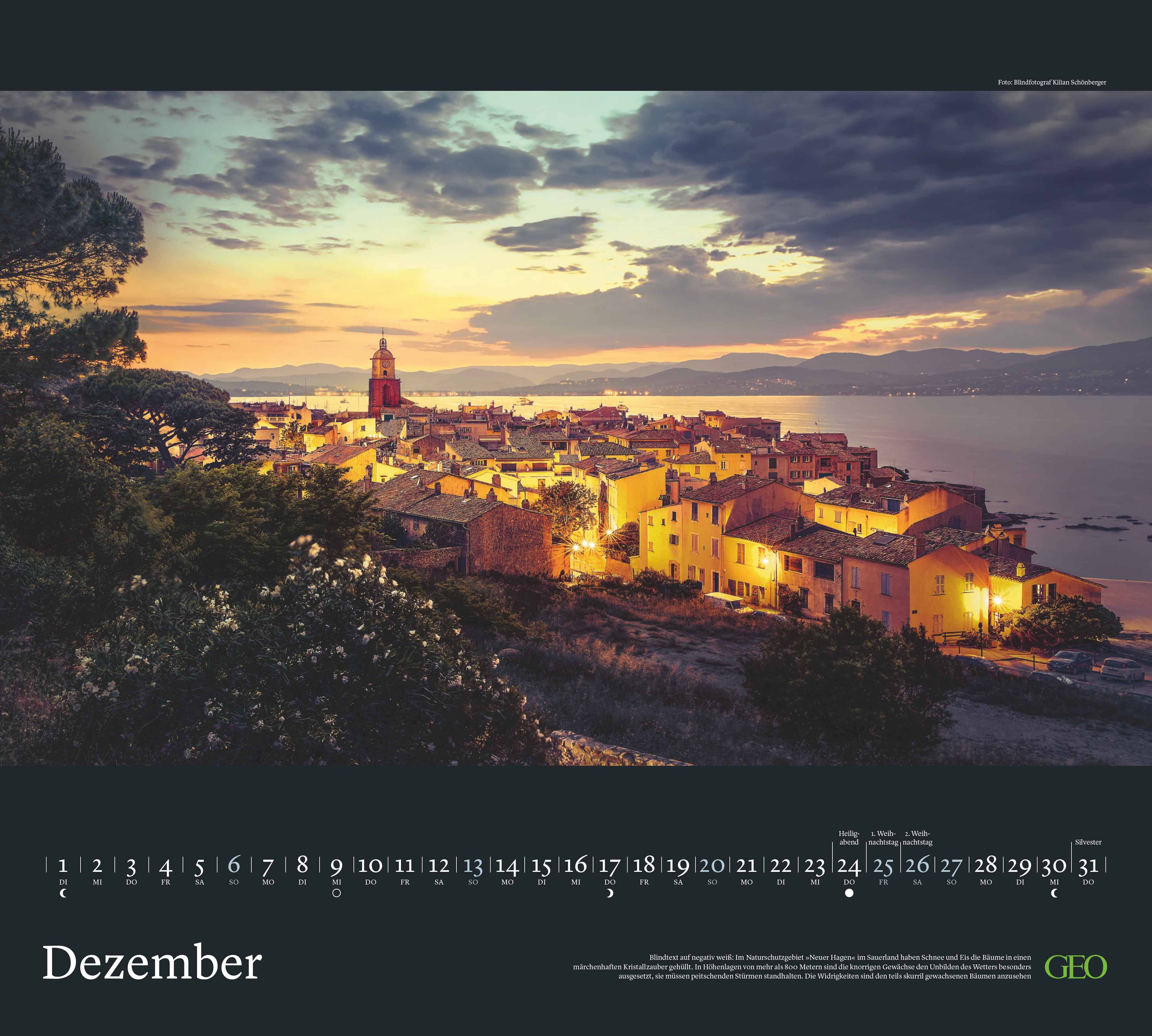 Der GEO Kalender Im Licht des Südens 2026 bringt die Wärme und Leichtigkeit des Südens direkt in Ihr Zuhause. Ob Küste Dalmatiens, Santorin, die Kykladen oder die Azoren Monat für Monat entführt dieser Reise-Kalender an traumhafte Mittelmeer- und Inselwelten ...