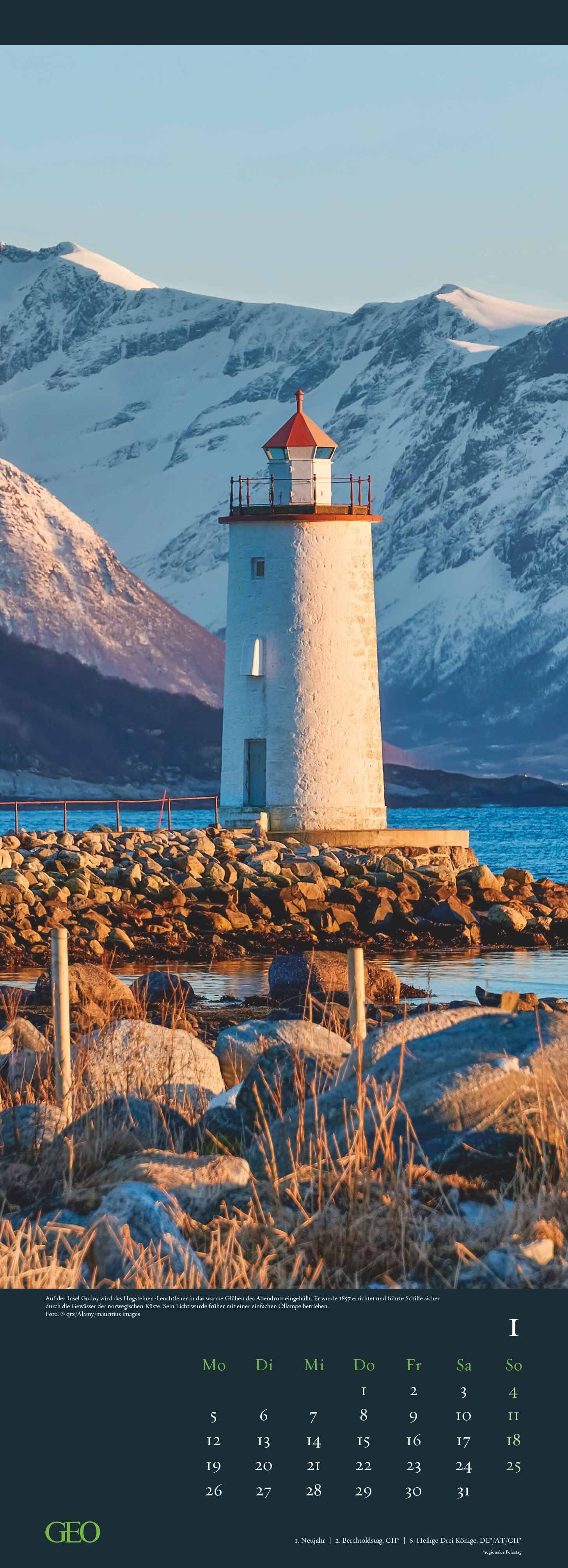Der GEO Leuchttürme 2026 Kalender präsentiert zwölf außergewöhnliche Leuchttürme aus aller Welt majestätische Bauwerke, die seit Jahrhunderten Schiffe sicher leiten und Wind und Wetter trotzen. Im eleganten Vertikalformat rücken sie Monat für Monat in den Mit...