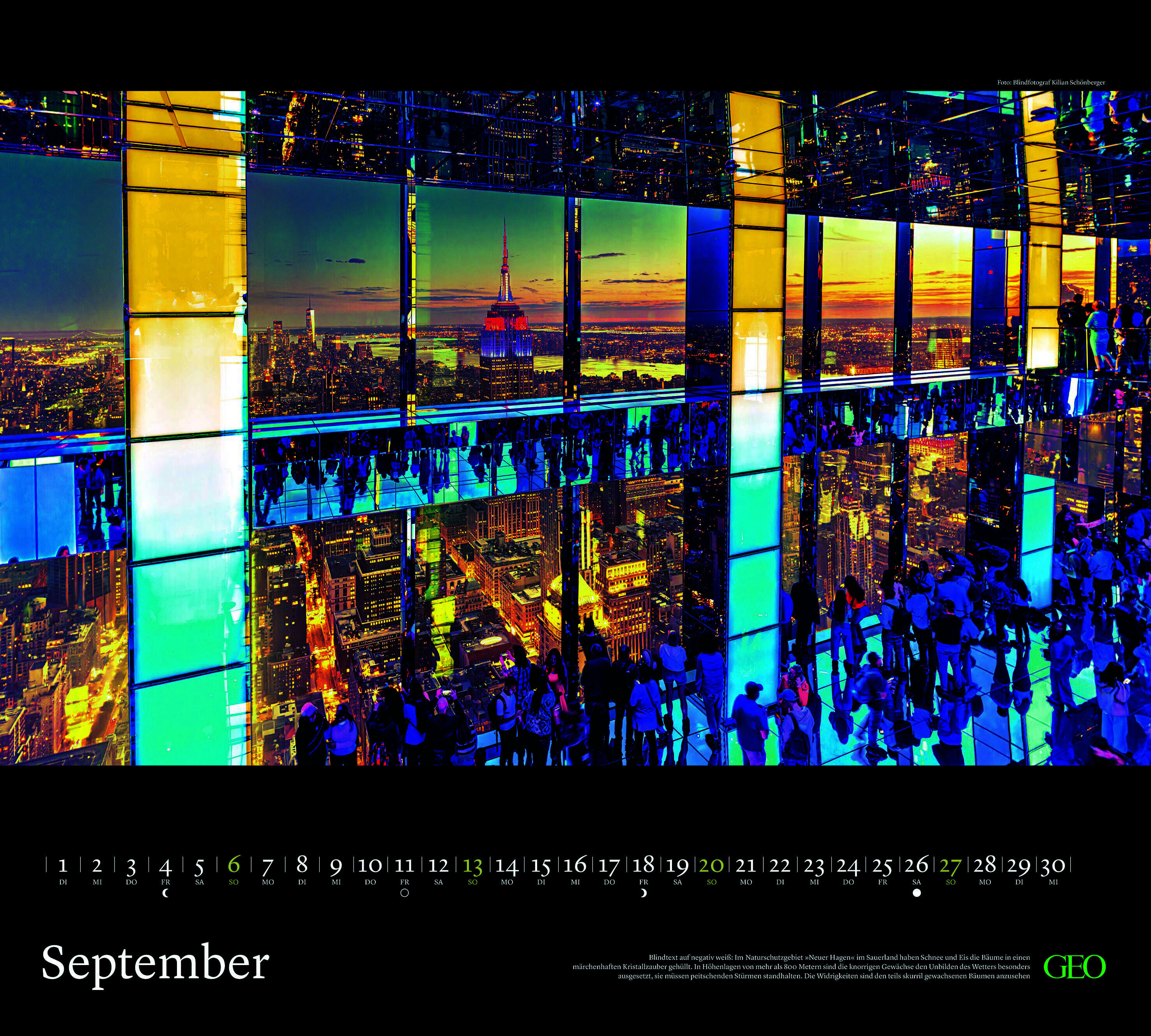 Der GEO Kalender New York 2026 zeigt die faszinierende Vielfalt der Weltmetropole: schwindelerregende Wolkenkratzer, das nächtliche Lichtermeer von Manhattan, den Central Park in besonderen Perspektiven und viele weitere Highlights der Megacity. Perfekt für a...