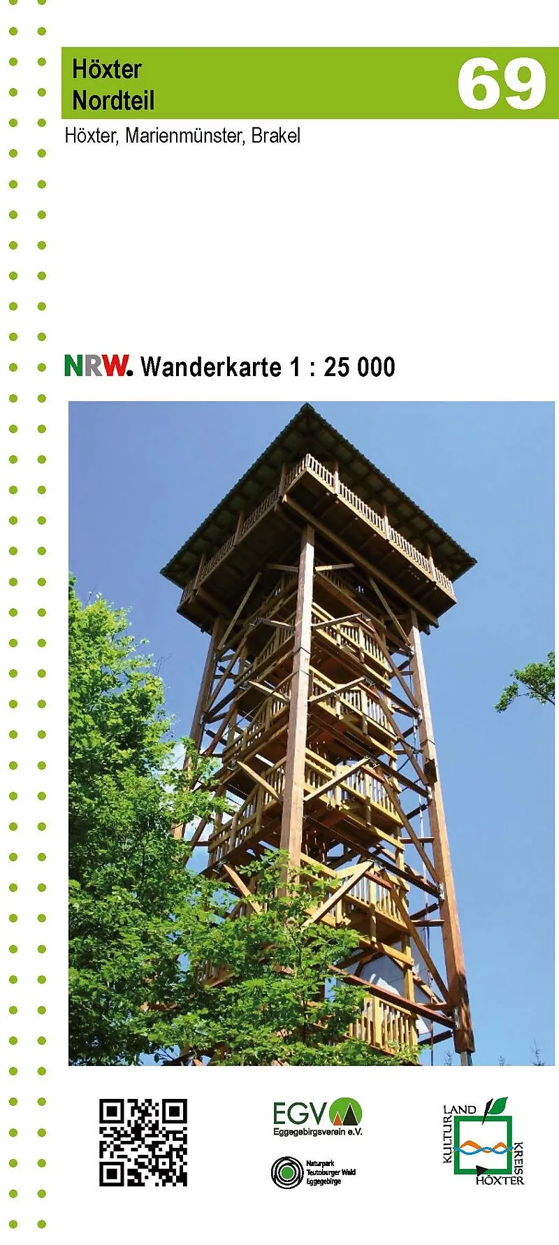 Wanderkarte Blatt 69 Höxter Nordteil 1:25.000. Höxter, Marienmünster, Brakel. Herausgeber: Eggegebirgsverein e.V. Die Karte basiert auf den amtlichen topographischen Geobasisdaten des Landes NRW und dem Freizeitkataster NRW