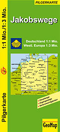 Jakobswege Deutschland 1:1 Mio und westliches Europa 1:3 Mio. Hauptwege, Zugangswege, Sehenswürdigkeiten.