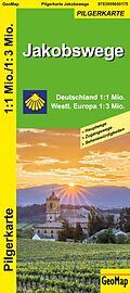 Jakobswege Deutschland 1:1 Mio und westliches Europa 1:3 Mio. Hauptwege, Zugangswege, Sehenswürdigkeiten.