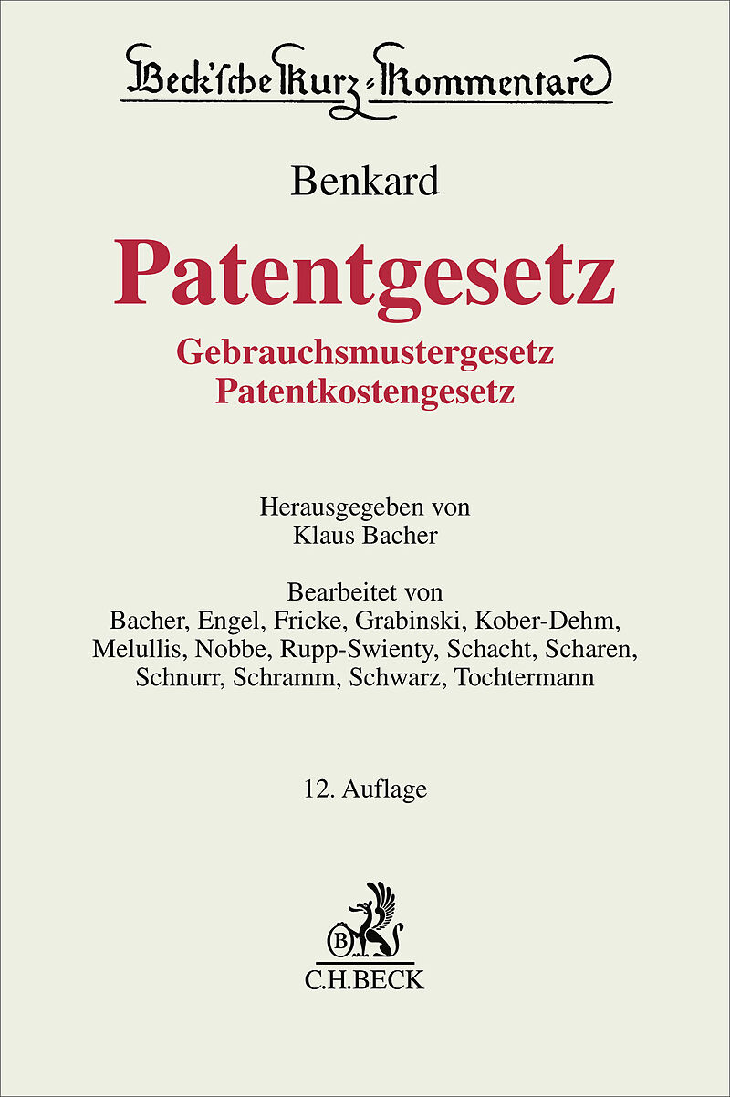 Zum Werk Dieser Klassiker ist der führende und für die Meinungsbildung unverzichtbare patenrechtliche Kommentar - nicht nur dank seiner traditionellen Nähe zur Rechtsprechung des BGH. Bezüge insbesondere zum Europäischen Patentübereinkommen (EPÜ), zum internat...
