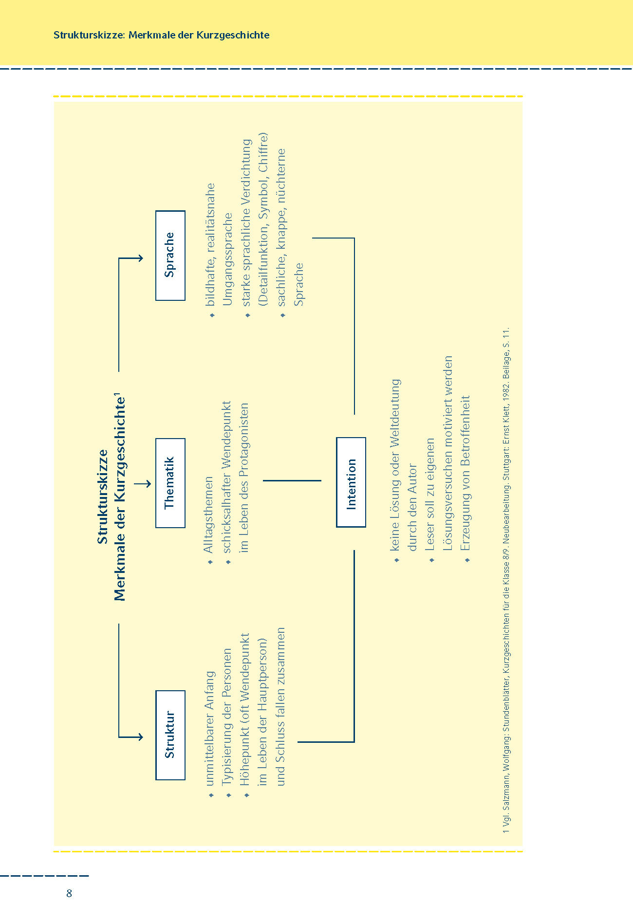 Sie müssen im Deutschunterricht eine Kurzgeschichte interpretieren und suchen nach einer Musterinterpretation? Der Band Beliebte Kurzgeschichten interpretiert hilft Ihnen. Hier finden finden Sie die 18 beliebtesten Kurzgeschichten des Deutschunterrichts analysiert und interpretiert. Jedes Kapitel beginnt mit einer kurzen Information zum Autor. Alle Kurzgeschichten sind komplett abgedruckt, das erspart Ihnen eine ggf. zeitaufwendige Suche nach dem Originaltext. Die anschließende Musterinterpretation in Form stichwortartiger Lösungsvorschläge zeigt Ihnen, wie sprachliche und formale Mittel der Kurzgeschichte einfach erschlossen werden können. Eine Strukturskizze pro Kurzgeschichte bereitet für Sie nochmals alle wichtigen Infos auf einer Seite auf. Folgende Kurzgeschichten werden interpretiert: Georg Britting: Brudermord im Altwasser (1929) Wolfgang Borchert: Das Brot (1946) Elisabeth Langgässer: Saisonbeginn (1947) Günther Weisenborn: Zwei Männer (1949) Heinrich Böll: Wanderer, kommst du nach Spa... (1950) Hans Bender: Die Wölfe kommen zurück (1954) Herbert Malecha: Die Probe (1954) Gerd Gaiser: Der Mensch, den ich erlegt hatte (1956) Hermann Kasack: Mechanischer Doppelgänger (1916, 1959) Siegfried Lenz: Ein Freund der Regierung (1960) Kurt Marti: Neapel sehen (1960) Marie Luise Kaschnitz: Popp und Mingel (1960) Gerhard Zwerenz: Nicht alles gefallen lassen (1962) Ilse Aichinger: Das Fenster-Theater (1963) Peter Bichsel: Die Tochter (1966) Ralf Thenior: Der Fall (1975) Josef Reding: Auf ziseliertem Silber (1977) Thomas Bernhard: Umgekehrt (1978)