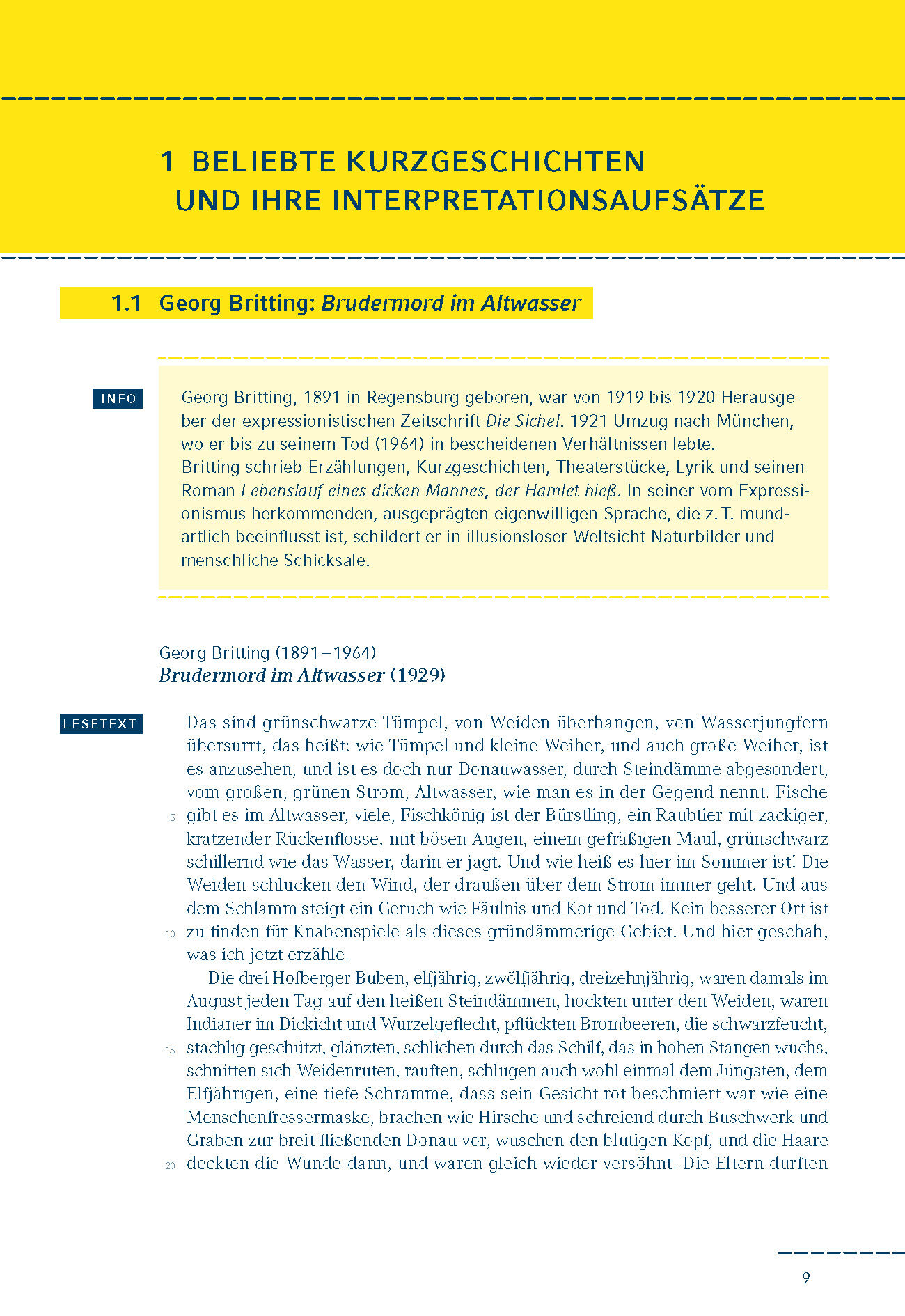 Interpretiert werden 18 beliebte Kurzgeschichten, u. a.: