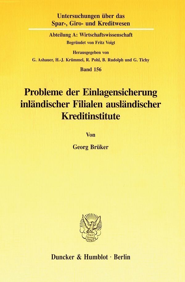 Probleme der Einlagensicherung inländischer Filialen ausländischer Kreditinstitute.