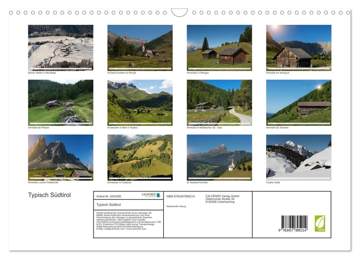 Typisch Südtirol (Wandkalender 2026 DIN A3 quer), CALVENDO Monatskalender