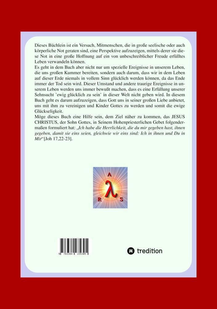 Dieses Büchlein ist ein Versuch, Mitmenschen, die in große seelische oder auch körperliche Not geraten sind, eine Perspektive aufzuzeigen, mittels derer sie diese Not in eine große Hoffnung auf ein von unbeschreiblicher Freude erfülltes Leben verwandeln können...