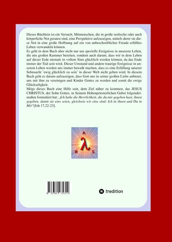 Dieses Büchlein ist ein Versuch, Mitmenschen, die in große seelische oder auch körperliche Not geraten sind, eine Perspektive aufzuzeigen, mittels derer sie diese Not in eine große Hoffnung auf ein von unbeschreiblicher Freude erfülltes Leben verwandeln können...