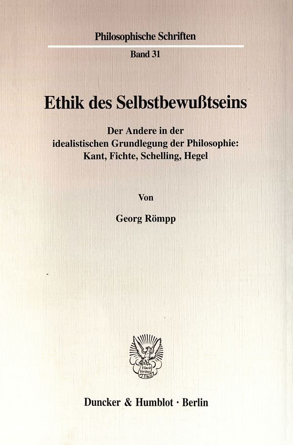 In dem vorliegenden Buch wird auf den Anfang einer Ethik des Selbstbewußtseins im zentralen Gedankengang der idealistischen Philosophie aufmerksam zu machen gesucht: für die Kantische Philosophie mit Hilfe systematischer Überlegungen und bei Fichte, Schelling ...In dem vorliegenden Buch wird auf den Anfang einer Ethik des Selbstbewußtseins im zentralen Gedankengang der idealistischen Philosophie aufmerksam zu machen gesucht: für die Kantische Philosophie mit Hilfe systematischer Überlegungen und bei Fichte, Schelling und Hegel anhand ausgewählter Texte. In dieser Ethik ist das Desiderat einer Wahrung der Eigenheit des Anderen erfüllt, indem sie als integraler Bestandteil einer Strukturexplikation des Selbstbewußtseins in der Aufklärung der Verständlichkeit der Welt für uns mit ethischen Konzepten entwickelt wird. Das Bewußtsein von sich selbst enthält eine Unbestimmtheit in sich, die allein durch die ethische Beziehung zum Anderen so strukturiert zu denken ist, daß das Selbstbewußtsein weder seine interne Differenz verliert, noch in eine Beziehung extern bestimmter Relata transformiert wird. Das Ethische und das Sollen werden damit nicht als Phänomene in der Welt aufgenommen, sondern aus jener Bestimmungslosigkeit des Selbstbewußtseins entwickelt, aus der verständliche Bestimmtheiten der Welt auszuarbeiten sich die idealistische Philosophie zur genuinen Aufgabe gemacht hatte. Indem die idealistische Subjektphilosophie die Untrennbarkeit ihres tragenden Gedankens eines bewußten Selbstverhältnisses von seiner Explikation in ethischen Konzepten denkt, nimmt die Subjektivität auf der Grundlage des Selbstbewußtseins eo ipso den Status ethischer Verpflichtetheit an. In dieser ethischen Beziehung wird der Andere in einer Bestimmtheit anerkannt, die er sich nur selbst geben kann, so daß sie seine Selbstexplikation bleibt. Das Eigene des Anderen kommt deshalb im Innersten des als Selbstbewußtsein gedachten Subjekts in Gestalt der ethischen Verantwortlichkeit vor der und für die Freiheit des Anderen zur Geltung. Die idealistische Subjektphilosophie denkt das absolut Andere also bereits an ihrem Anfang in der keiner exogenen Bestimmtheit zugänglichen Selbstbestimmtheit des Selbstbewußtseins. Ein Bewußtsein des Anderen läßt sich demnach direkt im Zentrum der Philosophie des Selbstbewußtseins entdecken: als Ethik, die allein die Struktur des Selbstbewußtseins in seiner Identität und Differenz verständlich machen kann.