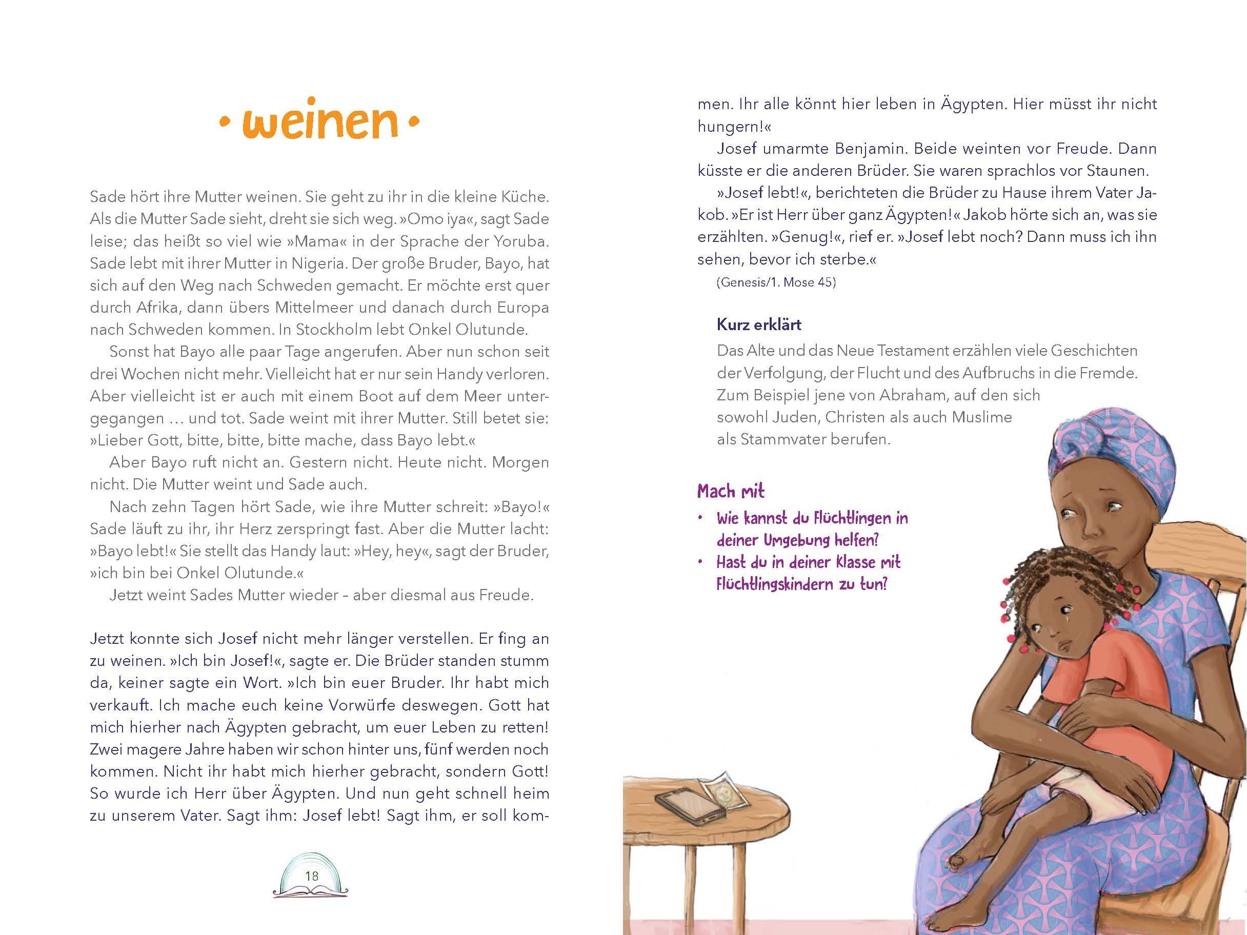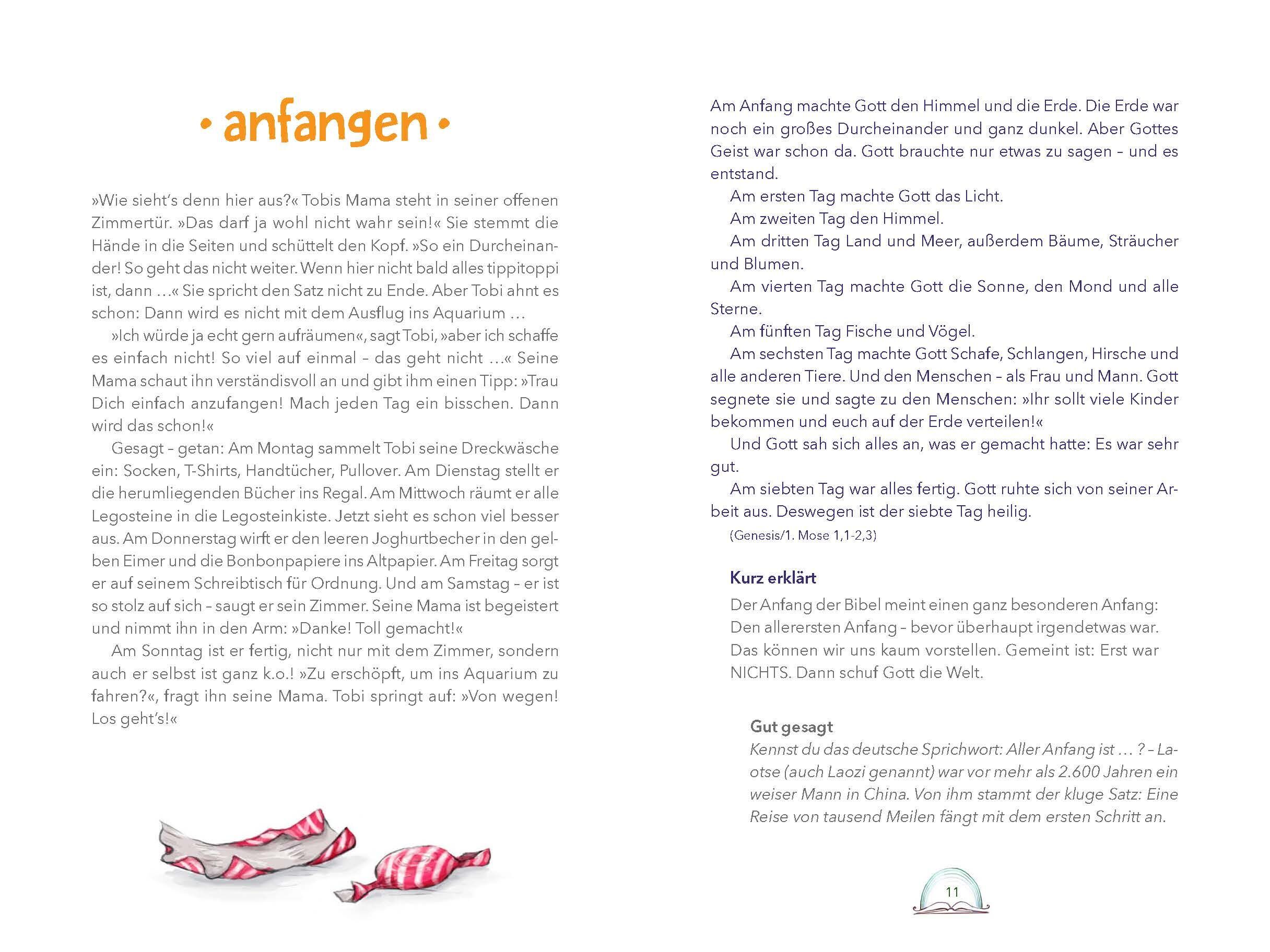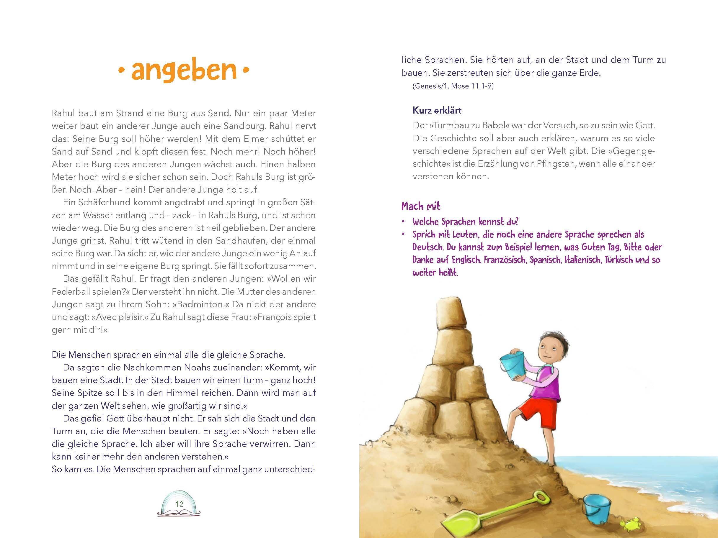 Aus dem Leben - hin zur Bibel. Das Konzept von Bibelbüchern für Kinder wird hier vom Kopf auf die Füße gestellt: Gewöhnlich erzählen Kinderbibeln biblische Geschichten in einfacher Sprache und führen Kinder so an biblische Themen heran. Hier ist es genau umgek...