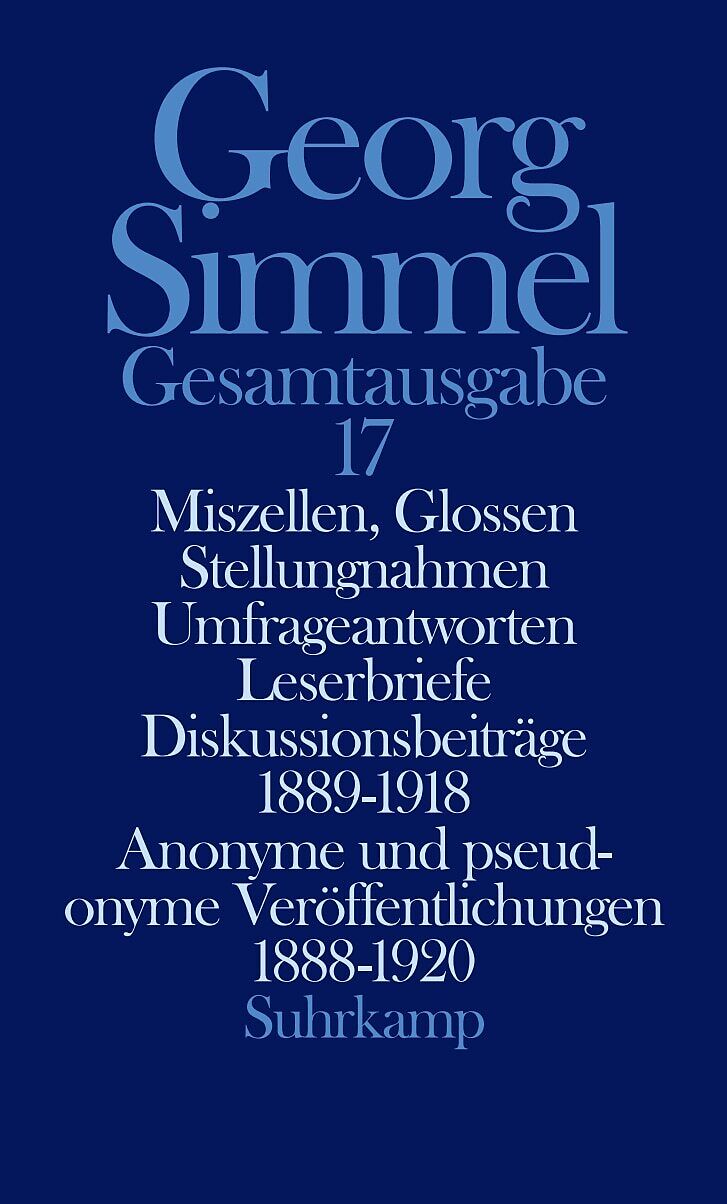 Der neue Band der Gesamtausgabe enthält eine Vielzahl kleinerer Texte von Georg Simmel, die bisher kaum bekannt oder nur schwer zugänglich sind. Darunter sind Miszellen, Glossen und Stellungnahmen, aber auch überraschende politische Diskussionsbeiträge, Umfra...